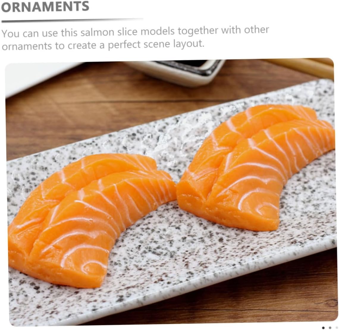 Di cibo simulato: questo di fetta di salmone, realistico e realistico, può essere utilizzato come decorazione o oggetto di scena per la fotografia, giocattolo di sashimi di salmone Decorazione a forma di salmone: il design bello e realistico è molto attraente e decorativo, salmone Decorazione di salmone: pregevole fattura con aspetto attraente e realistico, un bel decoro per la tua casa, filetto di salmone Cibo finto: ha un design semplice, ma è molto pratico da usare, ti dà un salmone finto Decorazione a forma di pesce per la casa: questo di fetta di salmone non si danneggia né cambia colore, sicuro e protetto per una decorazione a lungo termine, salmone finto