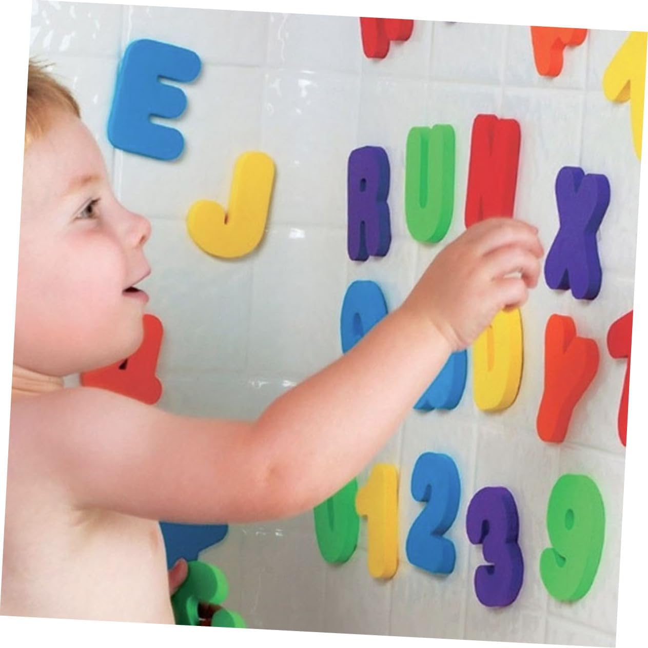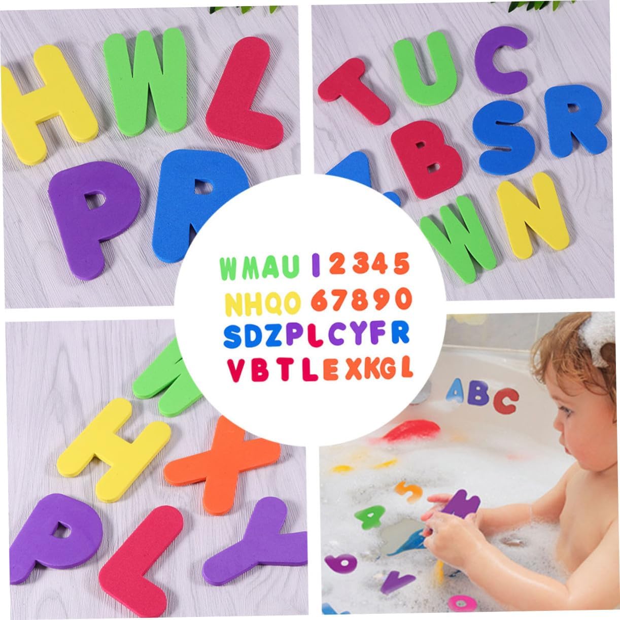 Giocattoli da bagno con lettere - Queste lettere EVA adesive sono durevoli e resistenti a strappi, deformazioni o macchie. Giocattoli da bagno EVA - Le lettere e i numeri giocattolo ti aiutano a combinare facilmente il tempo di apprendimento educativo con il tempo di gioco. eva lettere giocattoli educativi per - un modo pratico e divertente per intrattenere il tuo bambino e sviluppare il suo cervello, giocattoli da bagno con numeri - attaccalo alle pareti della vasca quando è bagnato e disponili per creare parole, puoi usarlo per esercitarti a leggere e contare, imparare i colori e molto altro ancora. Alfabeto da bagno per giocattoli da bagno - Lascia che tuo figlio impari l'alfabeto, impari a contare, impari a scrivere, impari colori diversi e, soprattutto, si diverta con loro, giocattoli per l'apprendimento precoce