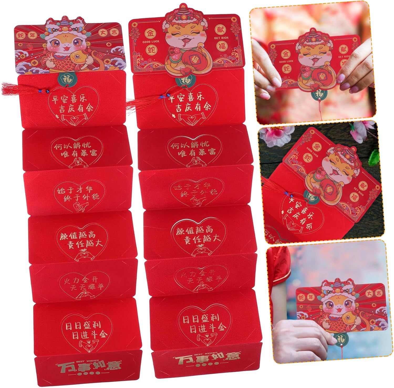 Grandi regali: queste buste rosse sono i grandi regali per, simboleggiano la buona fortuna e trasmettono benedizioni sincere per il nuovo anno, buste per soldi, busta rossa per il nuovo anno Design speciale per l'anno del serpente: celebra l'anno 2025 del serpente con queste buste rosse appositamente progettate, ideali per aggiungere un tocco festoso alle celebrazioni del capodanno lunare, busta rossa per matrimonio, portamonete per il capodanno cinese Design festivo: celebra l'anno 2025 del serpente con queste buste rosse dal design meraviglioso, perfette per arricchire i festeggiamenti del capodanno lunare, hong bao carino, busta rossa dell'anno del serpente Ampia capacità: con sei slot per carte, ogni busta può contenere tra 600 e 3000 yuan, rendendoli adatti a varie occasioni di regali, porta soldi per biglietti di nozze, porta soldi per compleanni Materiali resistenti: realizzate con materiali resistenti e spessi con stampa dettagliata, queste buste rosse offrono una sensazione e un aspetto lussuosi, buste rosse cinesi, buste portafortuna, buste rosse per il capodanno