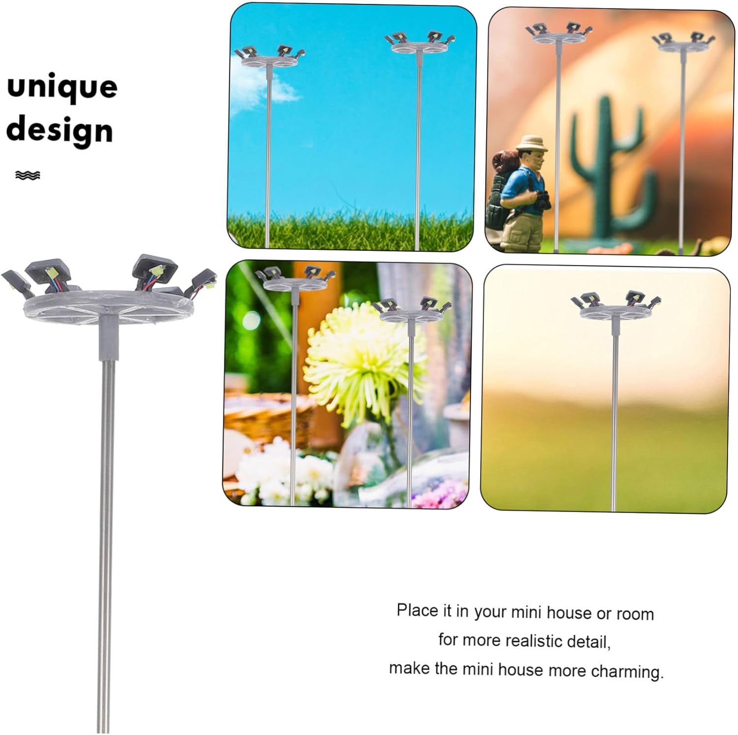 Lampada da giardino in miniatura: inviala agli amici, la adoreranno e potranno usarla per decorare la loro casa giocattolo, il lampione Modello di lampione: con un design unico ed elegante, la tua casa in miniatura sembra più calda e alla moda, modello di lampada da giardino Decorazioni per mini case: adatte per decorazioni di mini case e tavoli da sabbia, fantastiche decorazioni per la tua mini case, che scene di vita colorate, miniature di giocattoli per Design dalla forma speciale: il design dalla forma unica migliora la stabilità e impedisce alla lampada di ribaltarsi, garantendo la sicurezza durante l'uso, ornamento in miniatura, decorazione della stanza per la camera da letto Lampada da fata: il modello di lampada da cortile è dotato di fondo piatto, che garantisce la stabilità sul tavolo e sul pavimento, mini lampada decorativa
