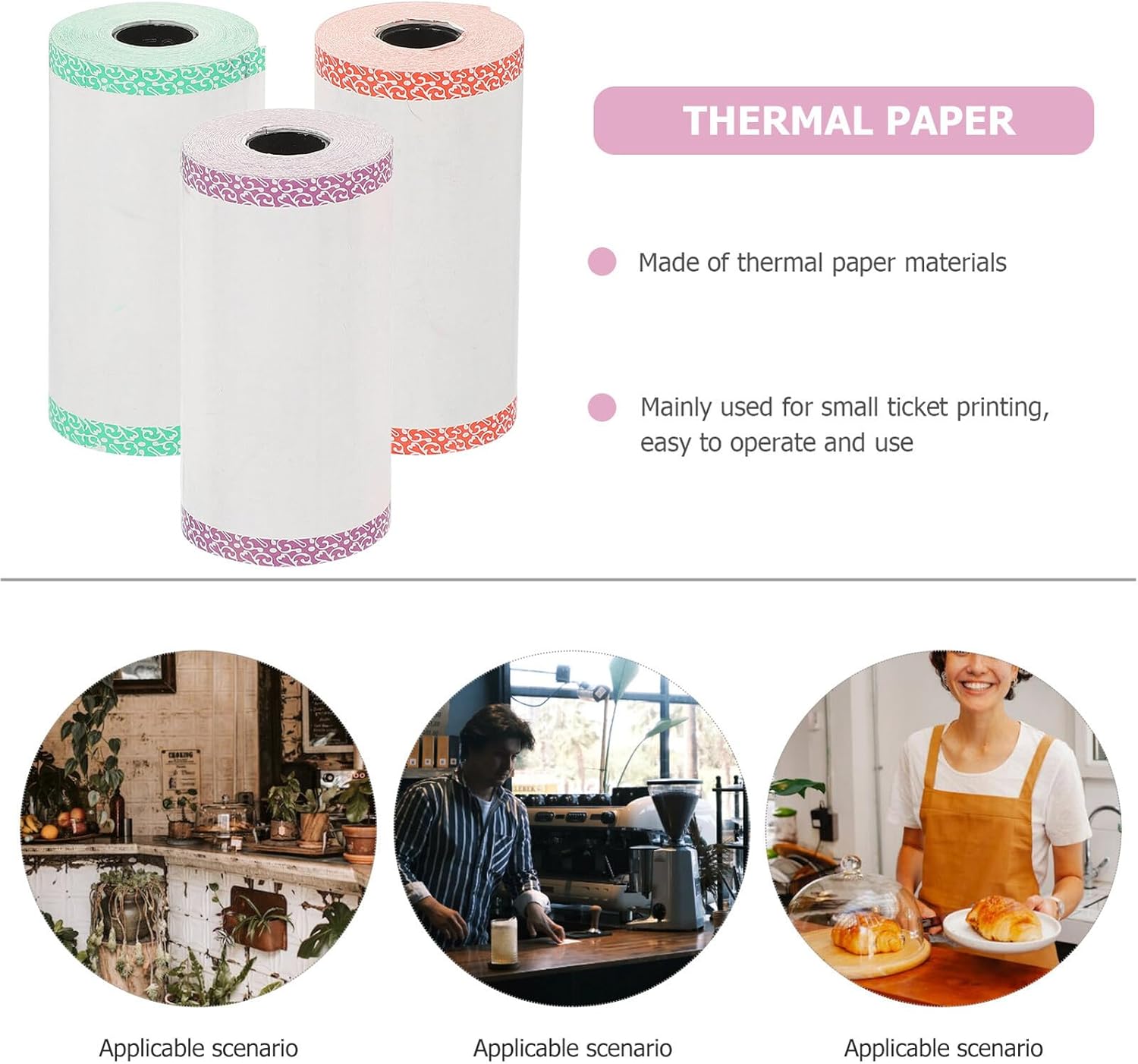 Carta: i di carta termica ampiamente utilizzati sono adatti per la casa, i negozi, l'ufficio, l'hotel, il ristorante e altro ancora, carta per stampanti di ricevute Stampante termica per ricevute: questi di carta termica sono progettati per stampare immagini nitide e chiare, comode da usare, carta per stampante termica Carta termica bianca per ricevute: il rotolo di carta termica è adatto per uso domestico, in ufficio, al supermercato, in negozio, in hotel, in azienda, in cucina Carta per scontrini: la carta termica è perfetta per supermercati, casa, ristoranti, hotel, banche, ospedali, uffici e altri, carta per scontrini Carta termica: superficie liscia, stampa nitida, anche in ambienti difficili, questo rotolo di carta termica non sbiadisce facilmente, ricarica la carta