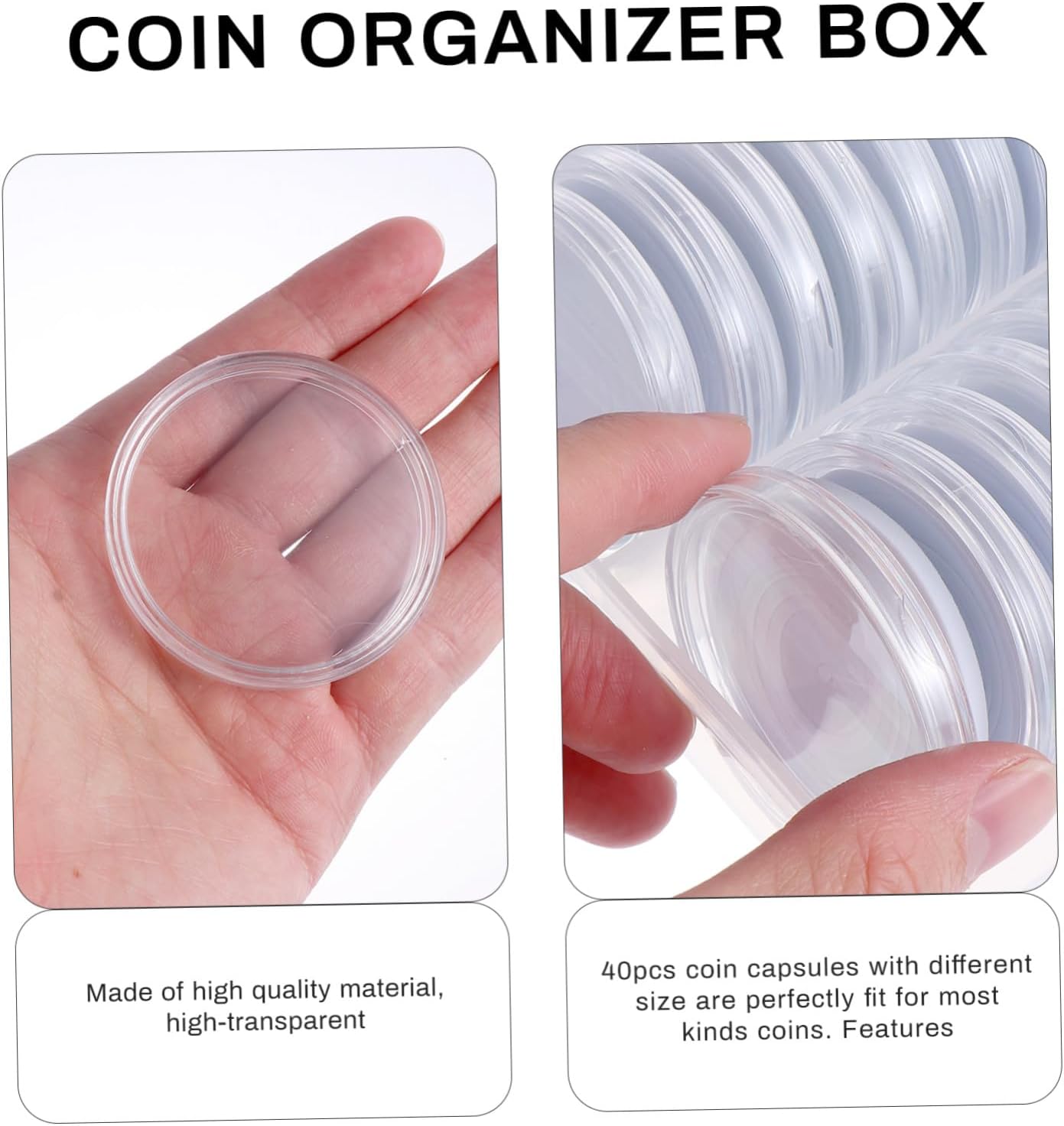 Capsule per monete: ogni custodia ha un'apertura a sul bordo esterno, facile aprire, comodo usare, mini monete Capsula per monete: ogni capsule per monete ha piccola parte scanalatura nel bordo esterno, puoi aprire i capsule per monete facilmente e comodamente con la mano, scatole per la conservazione delle monete Dimensioni versatili: questo set offre sei diverse dimensioni, adattandosi a un'ampia monete per esigenze ogni collezionista, collezione monete, per la conservazione delle monete Portamonete: la scatola immagazzinaggio offre sufficiente per riporre capsule monete, custodie per capsule monete Monete con guarnizione: il e si uniscono saldamente, il manterrà tue monete pulite, mini contenitori per monete