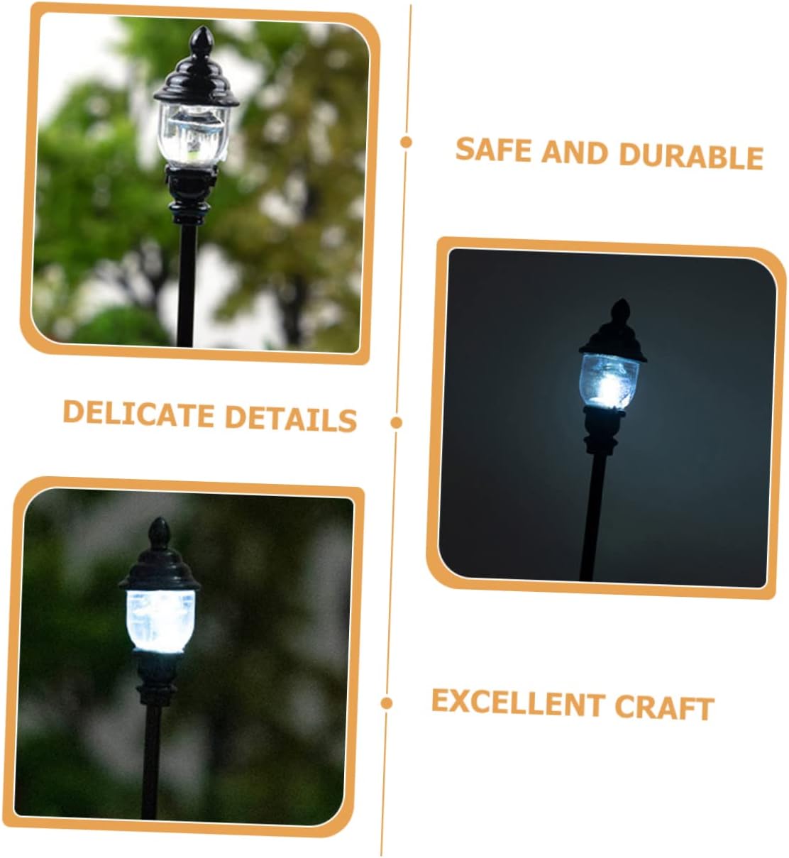 Lampione in miniatura: posizionalo su una casa in miniatura per dettagli più realistici e darti un'impressione visiva diversa, piccole Modelli di lampade: di utilizzo , una buona decorazione, in particolare per decorazioni paesaggistiche di mini case, modelli di lampioni stradali In miniatura: la lavorazione pregiata garantisce una e dettagli e un aspetto realistici, facili da usare, piccoli lampioni Lampada da parco in miniatura: lavorazione eccezionale, design ragionevole, stabile e pratico, ti offrirà una buona esperienza di utilizzo, modello di lampada in miniatura Lampada da giardino in miniatura: il materiale è sicuro e durevole, resistente all'usura e pratico per un uso prolungato, lampioni in miniatura