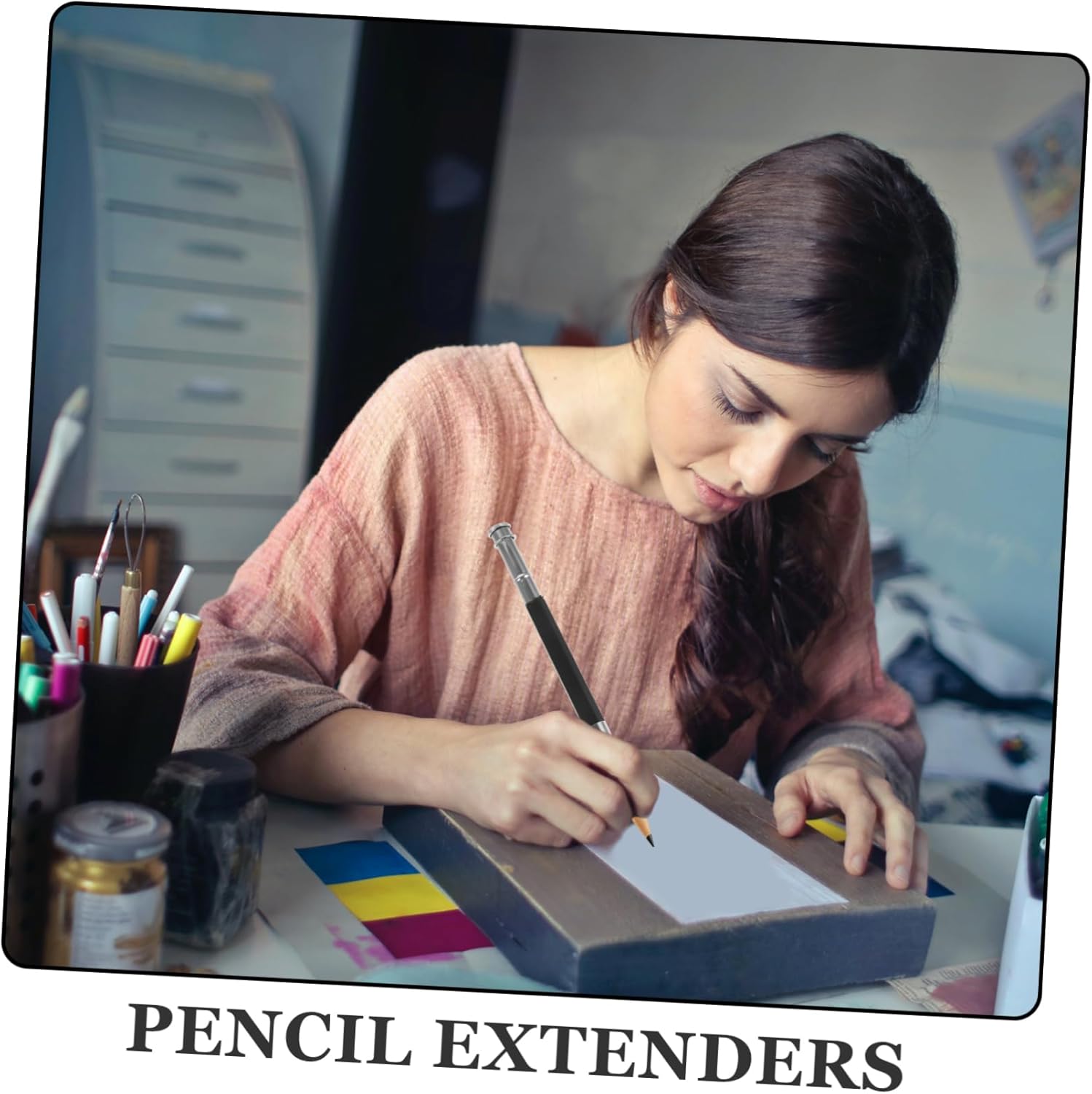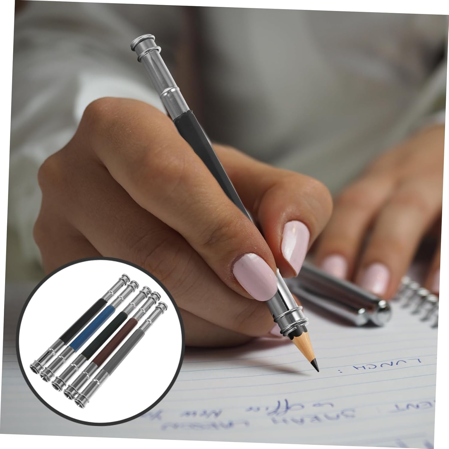 Estensione per matita da disegno: realizzata in metallo, questa estensione per matita ha una consistenza eccellente e puoi usarla con sicurezza, estensore per portamatite per artisti Estensione per disegno: il portapenne dalla buona consistenza può contenere matite corte senza aggiungere molto peso, estensione per pastelli a cera per artisti Portapenne in acciaio inossidabile: progettato appositamente per matite colorate, è robusto e durevole, non rompe facilmente e può essere utilizzato con sicurezza, prolunga per matite Strumenti artistici: questo estensore per matite adatta alla maggior delle matite colorate, comprese le matite colorate a pastello, ecc., supporto per estensore per matite Supporto estensibile per pastelli: ti consente di utilizzare le matite finché non sono troppo corte per essere temperate, professionale e pratico, porta carboncino
