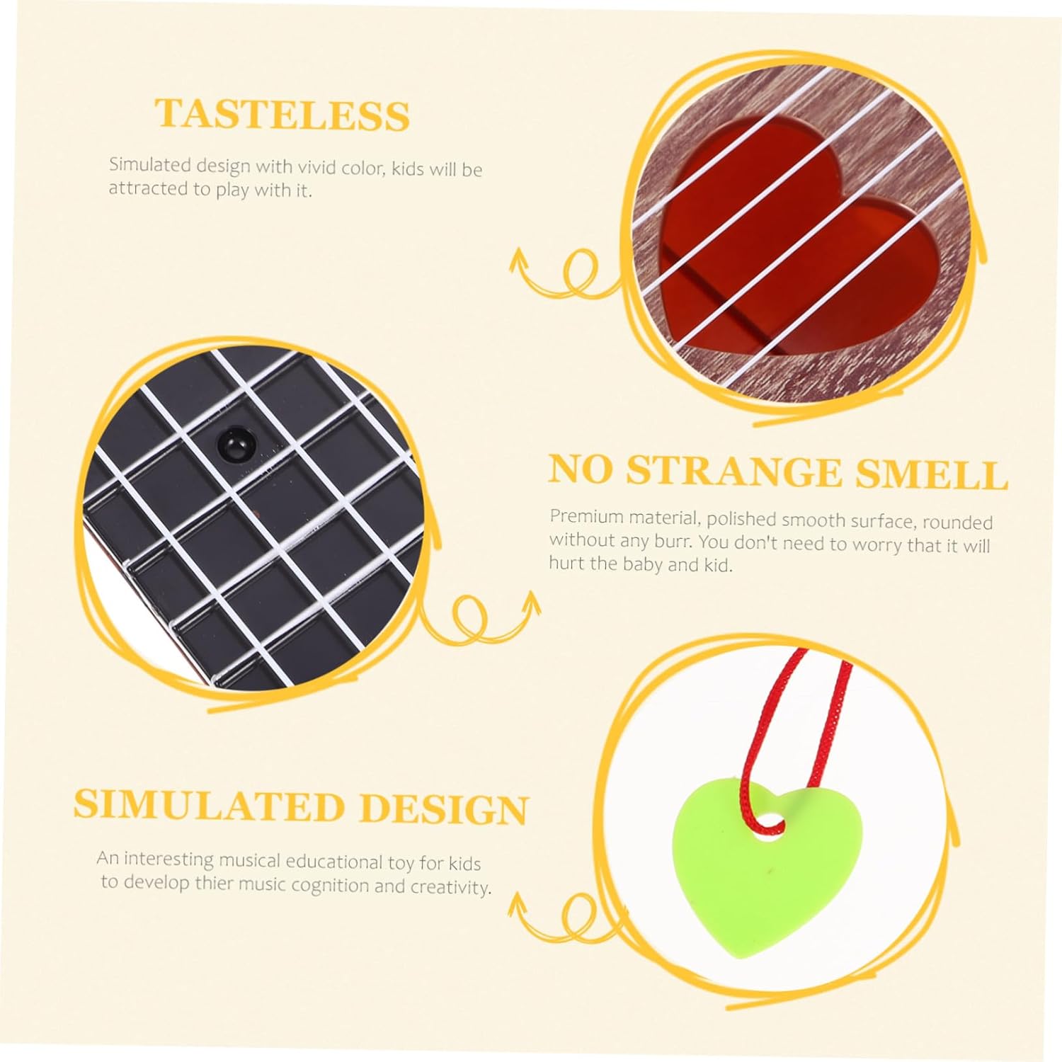 Ukulele per - non è solo uno strumento divertente per i tuoi bambini, ma anche un giocattolo educativo per i tuoi ragazzi e ragazze, ukulele per principianti per strumenti per bambini piccoli - un fantastico regalo per lei per compleanno, Natale, Capodanno, festa dei bambini e molto altro ancora, ukulele giocattolo per bambini - angoli e superfici sono ben lucidati, senza sbavature, non fa male alle mani, ukulele a corda per giocattoli per bambini - ottima fattura, curato nei minimi dettagli per darlo un aspetto attraente e affascinante, Ukulele per bambini giocattolo musicale per principianti - ottimo strumento musicale giocattolo per sviluppare i loro talenti musicali, abilità motorie e abilità pratiche, giocattolo musicale per chitarra