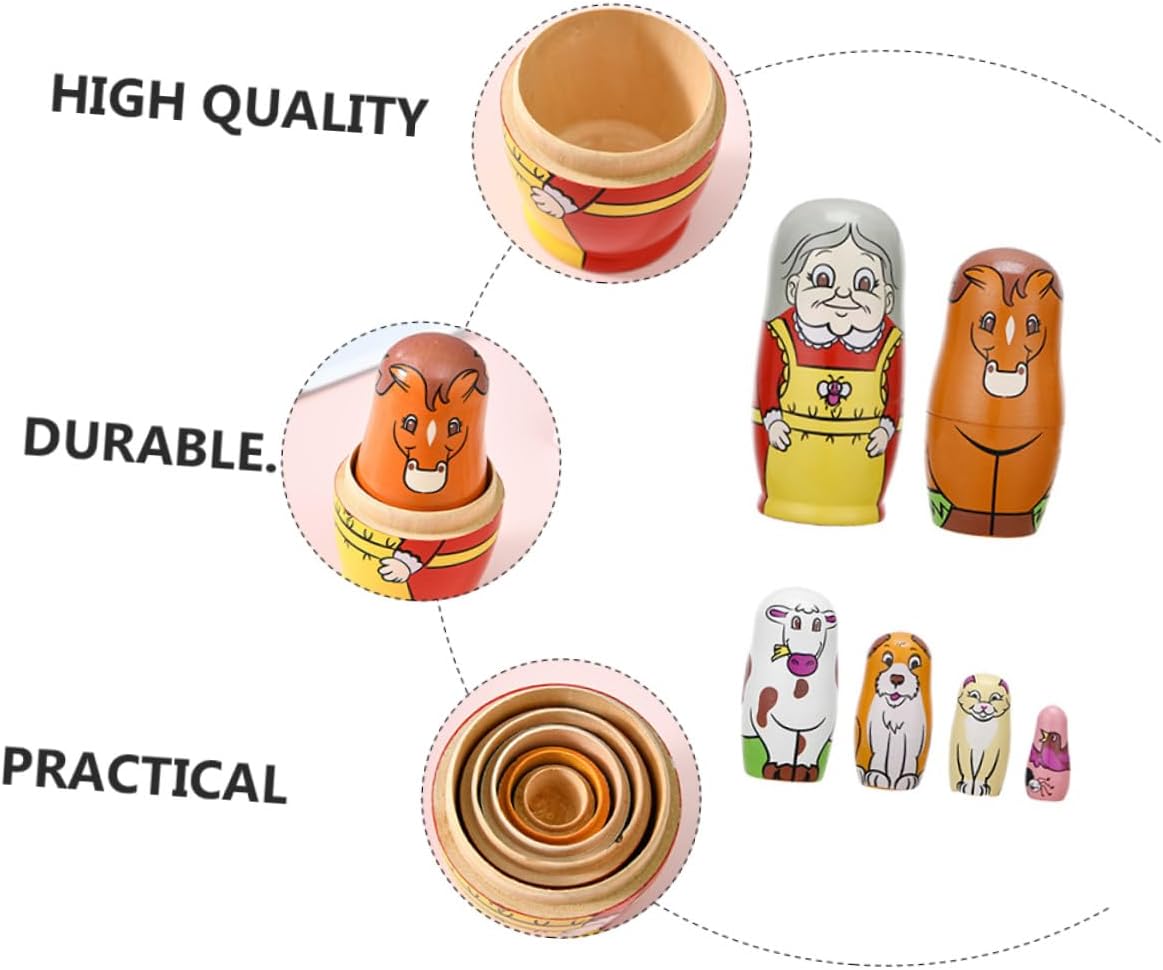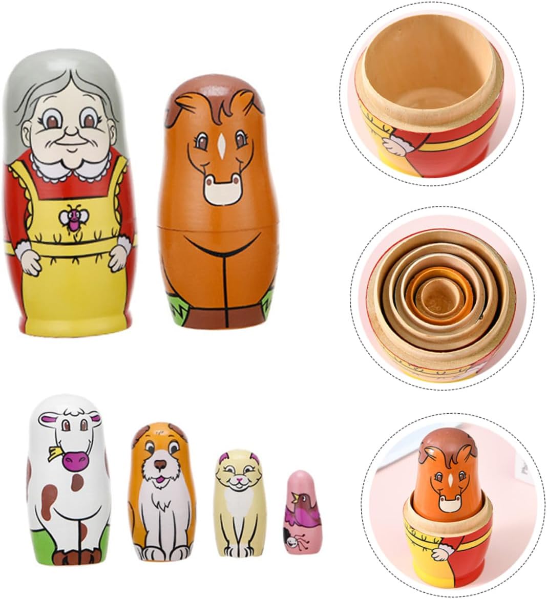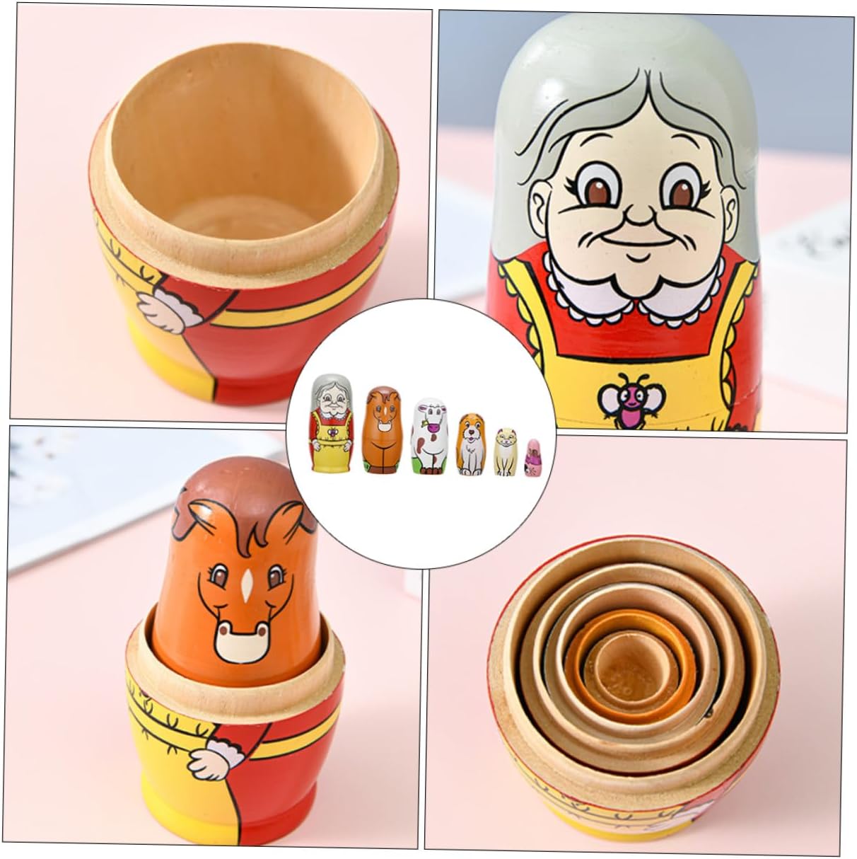 Matrioska in legno: bella sia per gli adulti che come collezione o decorazione, Matrioska Nesting: colore dipinto che è attraente per te e ottimo anche per i tuoi amici, Matrioska russa impilabile per: ogni dettaglio del giocattolo dei cartoni animati è delicato, con superficie liscia e aspetto liscio, Matrioska Giocattoli impilabili: Matrioska con motivo a cartoni animati, adorabile e bellissima, in 6 diverse dimensioni, con cui è divertente, Matrioska che nidifica arredamento: materiale selezionato, non facilmente deformabile o rotto, matrioska di legno
