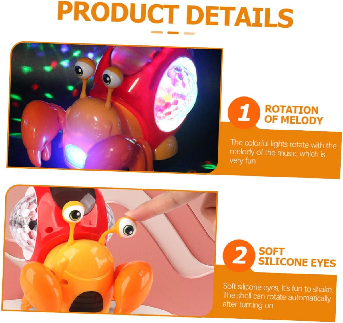 Giocattoli per gattonare: quando si gira, si sente un , che attira l'attenzione ed esercita la coordinazione occhio-mano dei , giocattolo per gattonare Giocattoli da passeggio: superficie liscia e arrotondata, senza sbavature, questo giocattolo per gattonare è sicuro per i , giocattolo per gattonare granchietto Aiuta il a camminare: design a conchiglia rotante, che emette un suono mentre gira, invoglia i a praticare il movimento delle mani, giocattoli da arrampicata per piccoli al chiuso Giocattolo elettrico per gattonare con voce: il giocattolo per gattonare guiderà i tuoi a muoversi e a migliorare lo sviluppo muscolare, giocattolo per gattonare per Giocattoli per che gattonano: artiglio, illuminazione rotante e divertente musicale, i seguiranno questo gattonamento per esercitarsi a gattonare e camminare, giocattoli per che camminano