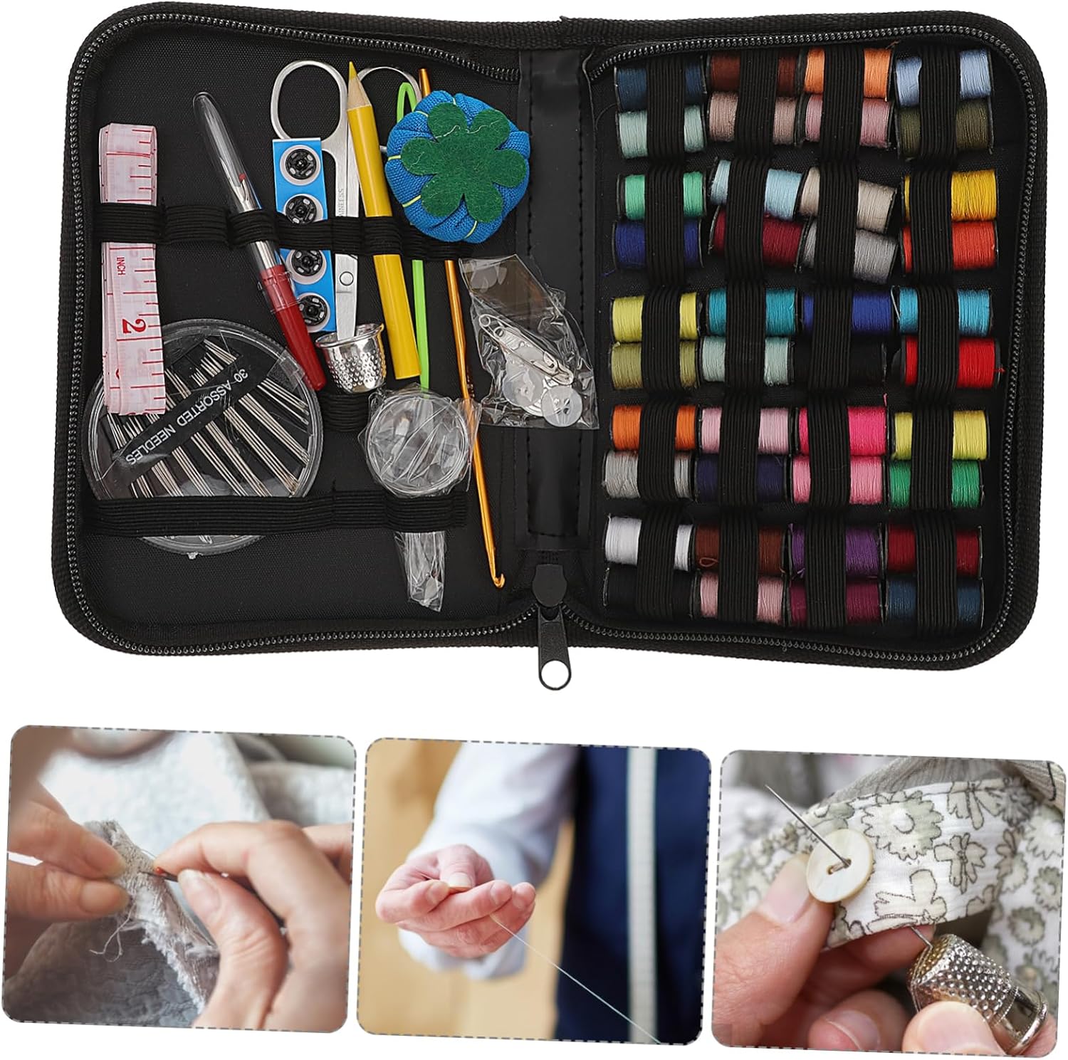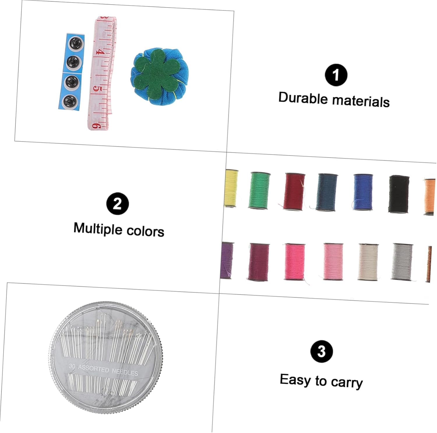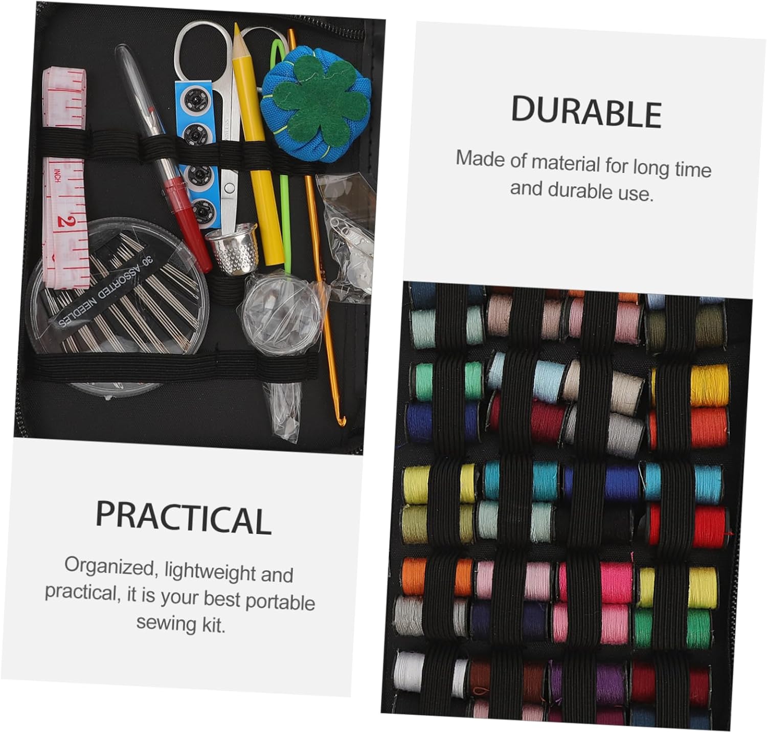 Strumenti per cucire: leggeri e pratici, adatti per attività all'aperto, strumenti per cucire Ago da cucito - decorazioni per cucito, artigianato, vestiti, confezione di vestiti, ecc., accessori per cucire Strumento per cucire su misura - applicabile a vari tipi di abbigliamento, tessuti industriali, tessuti per la casa e altri articoli per cucire. Filo da cucito: il set comprende aghi, fili colorati, forbici, bottoni, spille e altri accessori, e comprende tutti gli strumenti necessari per il cucito fai da te, strumenti per cucire Kit di aghi da cucito - realizzato in materiale per un uso duraturo e duraturo, stitch tools