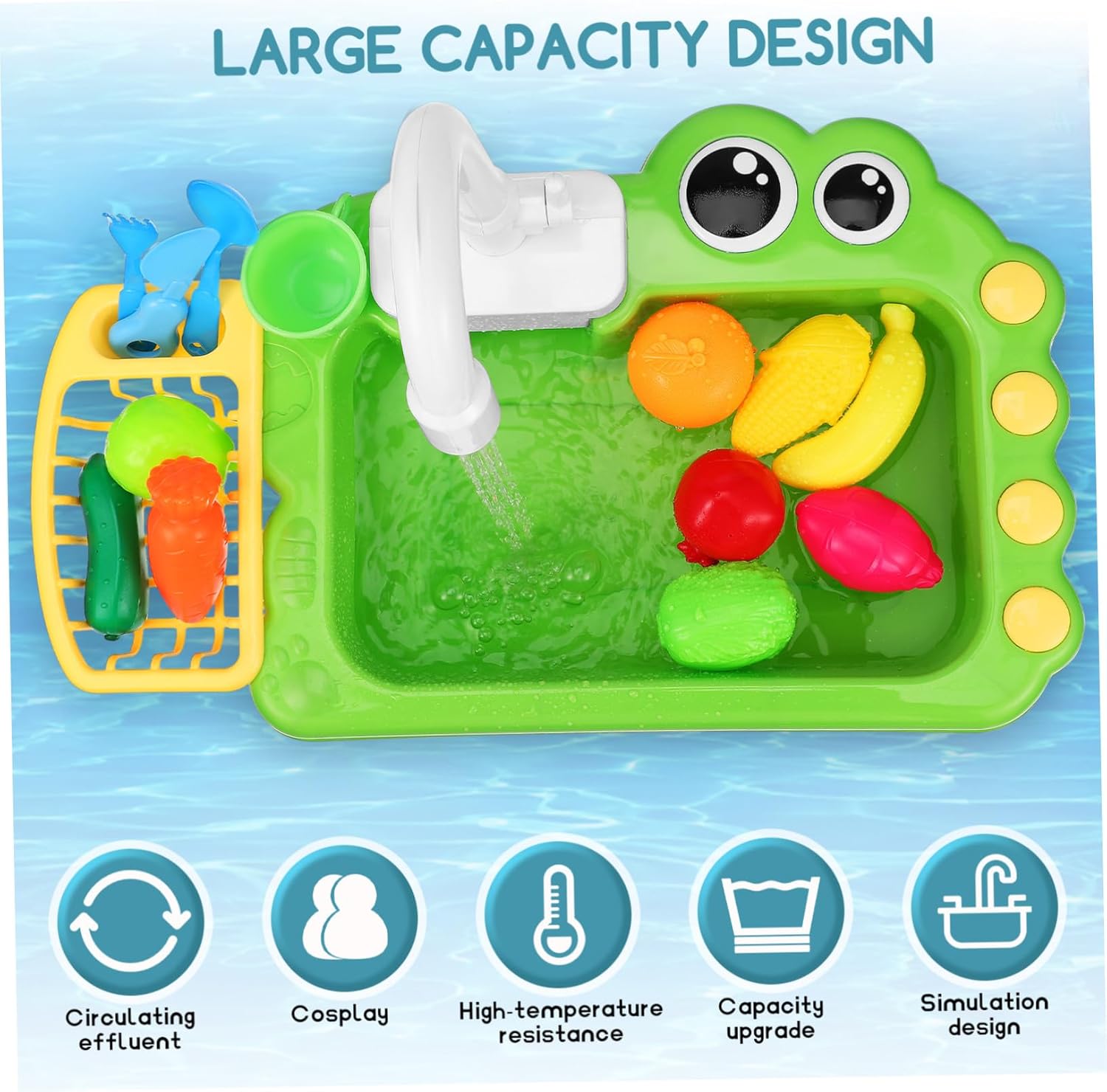 Design realistico: questo lavandino per bambini è dotato di un rubinetto realistico che ruota ed eroga acqua, aggiungendo divertimento all'esperienza di gioco, giocattolo lavandino, lavandino per Questo lavandino da gioco è realizzato con materiali robusti in modo che possa resistere all'usura dell'uso regolare e durare a lungo. Lavandino per bambini con acqua corrente, Lavandino da lavoro per bambini di grande capacità: Questo lavandino da gioco con acqua corrente ha una grande capacità e offre spazio sufficiente per lavare i piatti o riporre altri oggetti, Lavandino da gioco per bambini, Lavandino da gioco con acqua corrente Sicuro per: Questo lavandino da gioco con acqua corrente è progettato pensando ai bambini, con bordi arrotondati e superficie liscia, Lavandino per bambini con acqua corrente, giocattolo lavandino con acqua corrente Facile da usare: Questo lavandino per bambini è semplice e facile da usare, permettendo loro di imparare a lavare i piatti e sviluppare abilità pratiche, un lavello della cucina giocattolo e lavello con acqua corrente