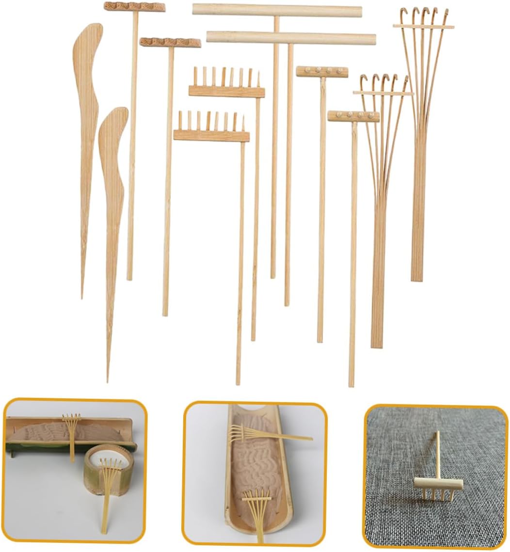 Mini rastrello decorativo: il set può essere utilizzato come accessorio da giardino con sabbia, per lavori manuali o come mini decorazione da giardino sulla scrivania Attrezzo da giardino: questi mini attrezzi da giardino sono realizzati in materiale resistente e pratico, quindi puoi utilizzare gli accessori da giardino Mini rastrello da giardino: che si tratti di un paesaggio secco o di un mini giardino, puoi progettare bene la scena con questi rastrelli e strumenti da tavolo per sabbia da giardino Mini rastrello: in stile rustico e semplice, sono decorazioni delicate e perfette per una fattoria, rastrello da giardino decorativo Piccolo rastrello da giardinaggio: questi strumenti da tavolo con sabbia sono piccolo e leggero, facile da trasportare e riporre. mini rastrello