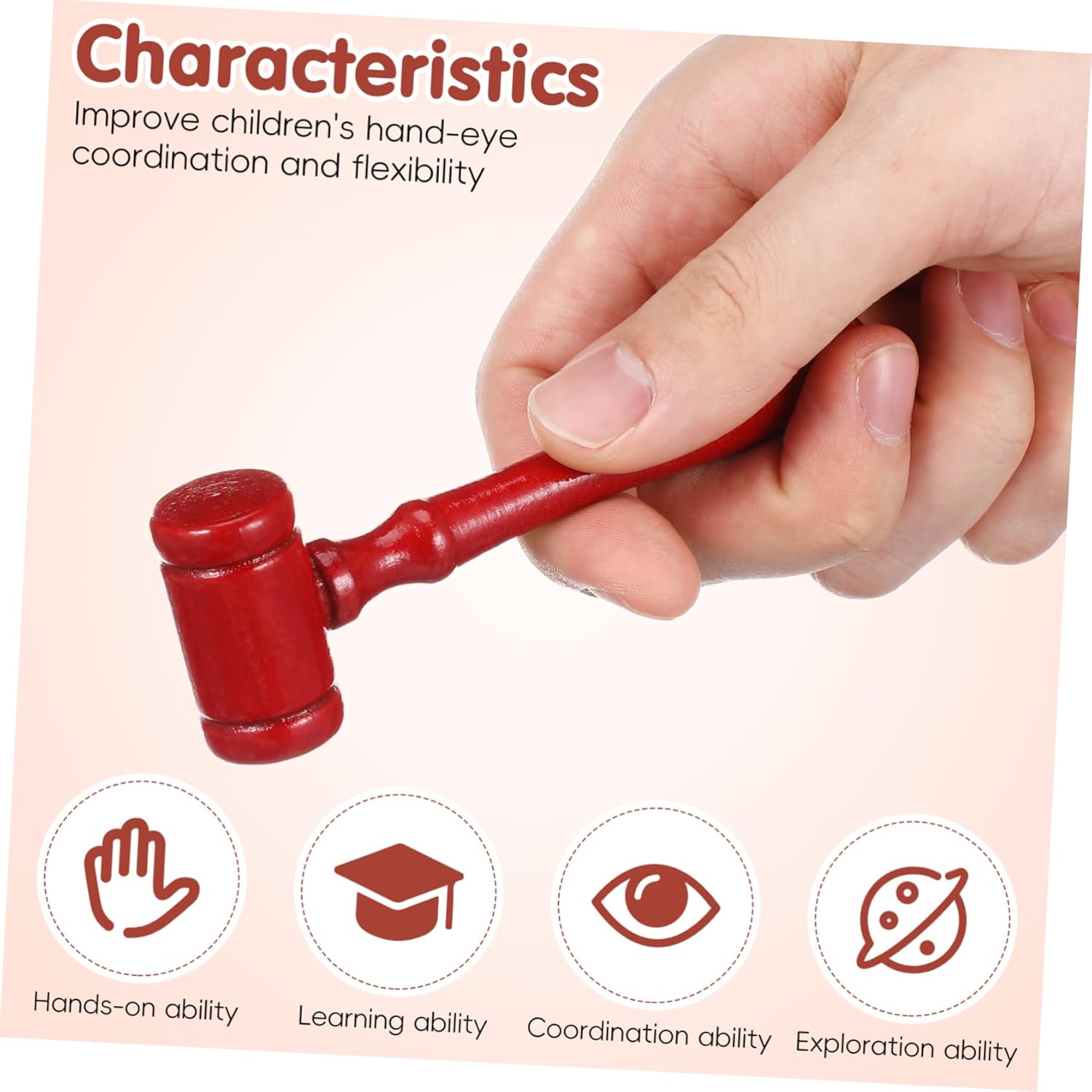 Martelli: materiale in legno, sicuro per l'uso da dei bambini, martelletto giocattolo Martelletto da giudice: fantastiche idee per ragazzi e ragazze, martelletto Piccolo martelletto giocattolo: perfetto per giochi di ruolo, trasforma il bambino in un piccolo giudice, martelletto giocattolo per giudici Martelletti per bambini: possono migliorare la coordinazione occhio-mano dei bambini, la manipolazione, promuovere il movimento del braccio, causa ed effetto, giudicare il martello. Martello giocattolo: divertiti mentre i bambini lo usano, martello da giudice