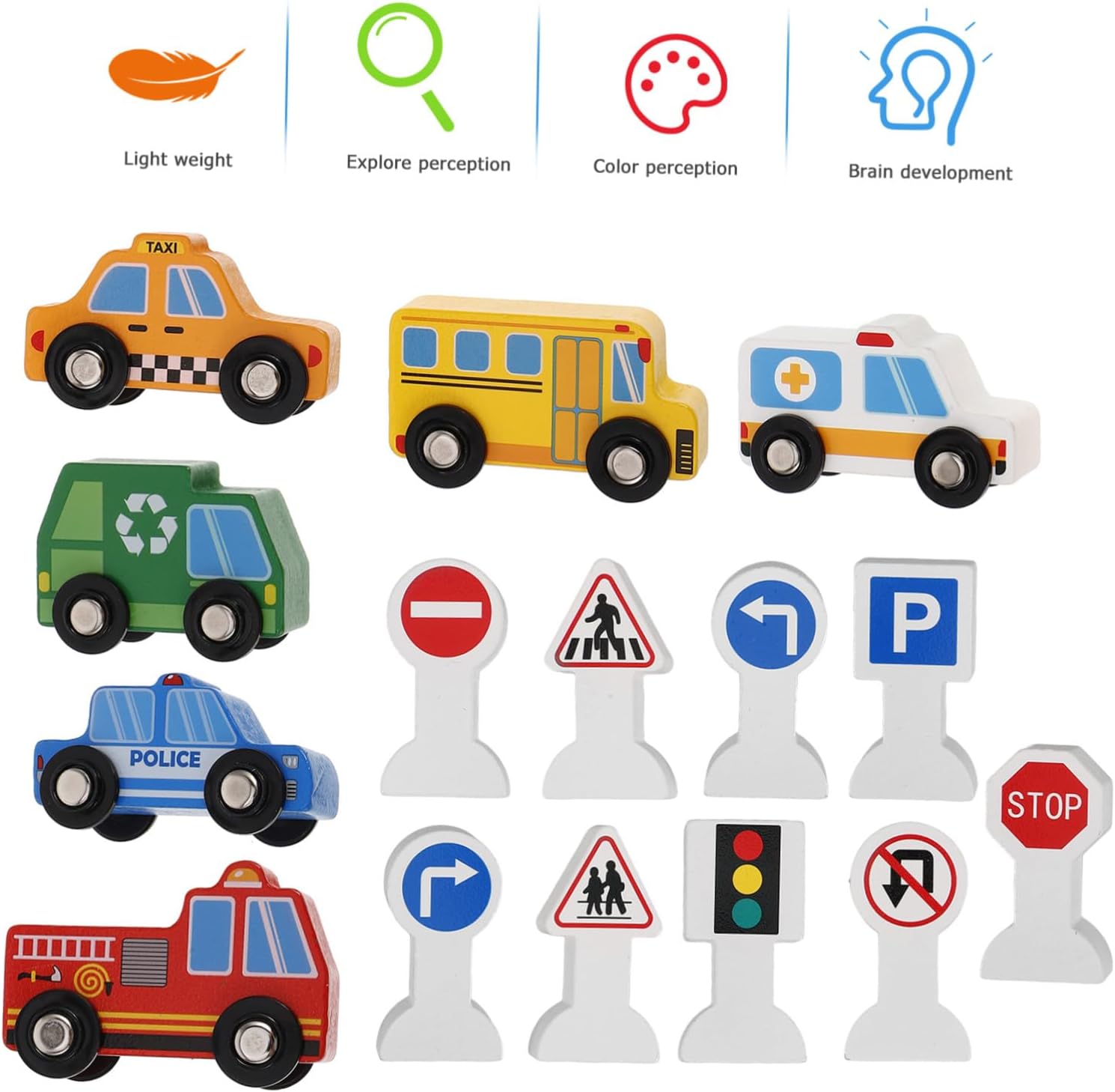 Veicoli : i colori vivaci consentono ai bambini di imparare i colori mentre giocano. questo renderà felice il tuo bambino quando lo riceverà. segnali stradali . Materiale in legno: il prodotto è realizzato in materiale in legno sicuro per garantirne la sostenibilità e la sicurezza, segnaletica stradale in legno, segnaletica stradale Giocattoli per veicoli da costruzione: veicoli in legno e segnali stradali realizzati in materiale di legno sicuro, durevole, possono essere utilizzati con sicurezza, segnale stradale Giocattoli in legno per bambini: un'auto divertente ed educativa che include diversi segnali stradali con cui i bambini possono imparare e giocare, giocattoli in legno per auto Stimola l'interesse per la conoscenza del traffico: questo prodotto stimola l'interesse dei bambini nell'apprendimento della conoscenza del traffico, auto di legno con segnale stradale, di auto di legno