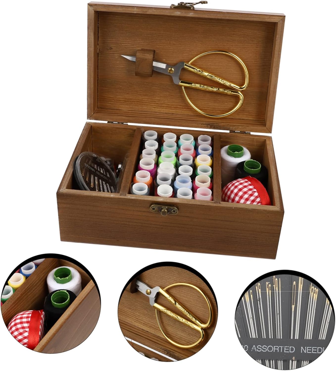 Strumenti per cucire: questo set strumenti per cucire è per lavori ricamo ogni tipo, kit aghi per cucire Strumenti per aghi da cucito: compatti, leggeri e pratici, puoi portarli con te anche quando sei in , kit strumenti per filo da cucito Borsa per ago e filo: kit professionale e completo articoli per cucire per l'uso , kit per aghi da cucito Strumenti per il filo da cucito: confezione legno e contenitore organizzato, leggero e pratico, kit aghi da cucito Kit strumenti per il filo comodo: questo set da cucito comprende gli strumenti necessari per fai da te, kit aghi da cucito