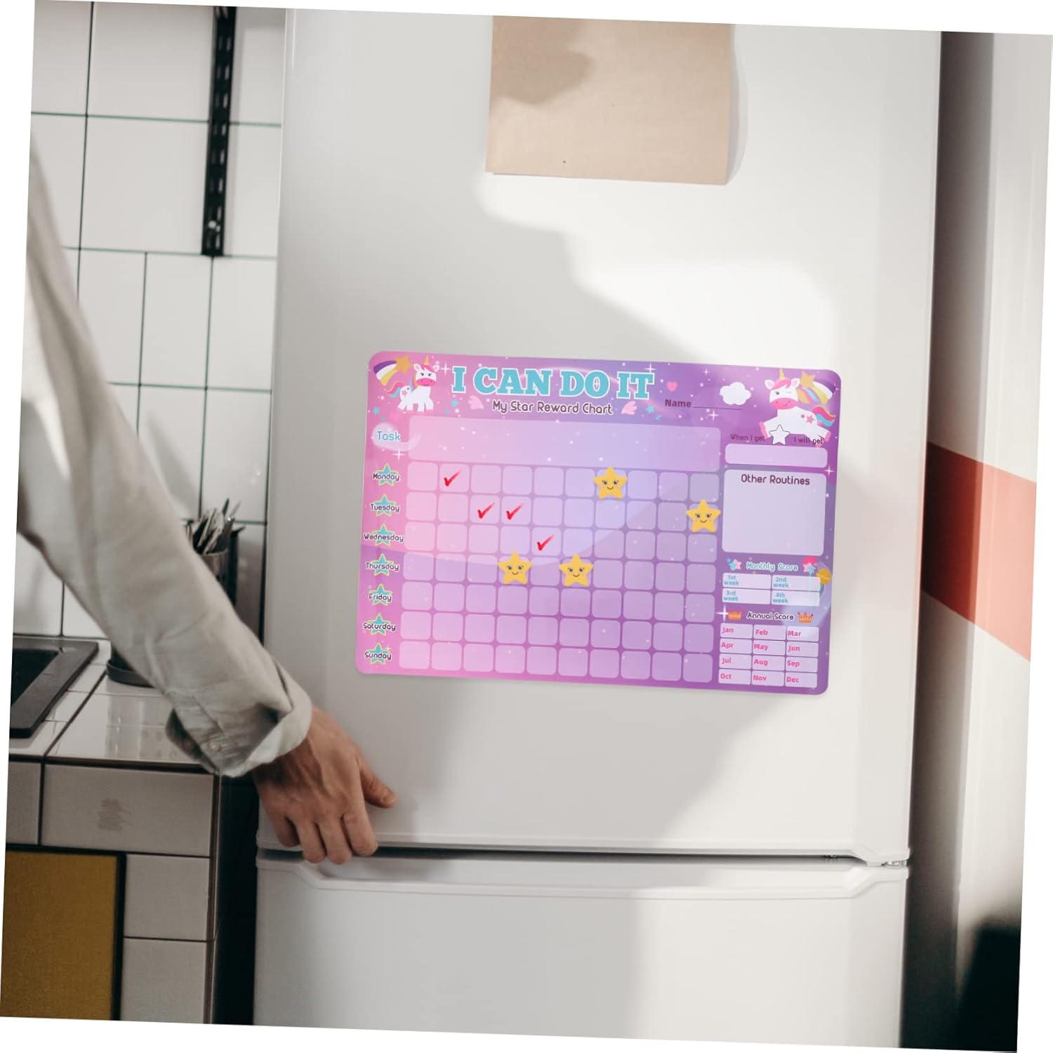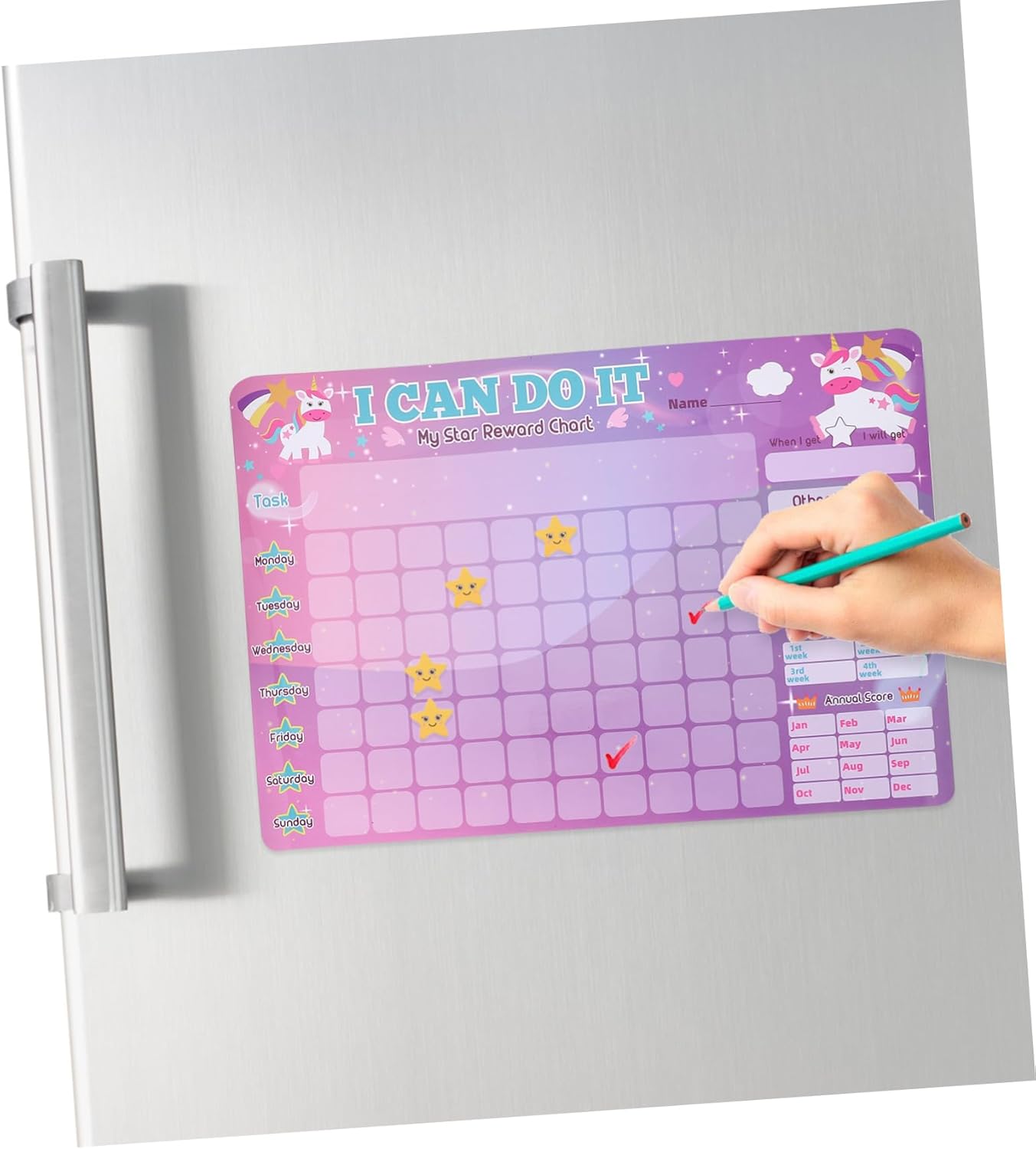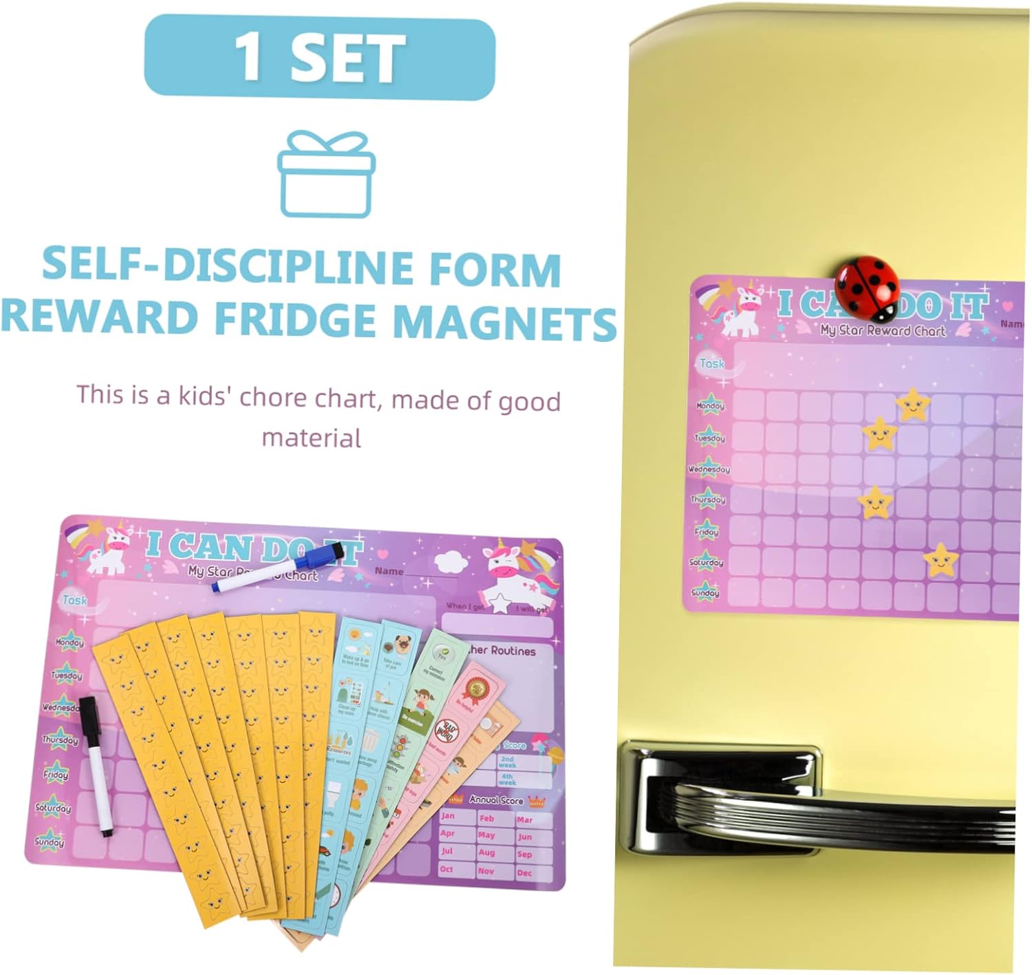 Tabella delle ricompense riutilizzabile: impostando un obiettivo a breve termine per i tuoi figli prima di uno a lungo termine per un'intera settimana, tabella delle ricompense per le faccende domestiche Tabelle degli adesivi per : questa tabella delle faccende domestiche per incoraggia il tuo a ripetere la sua routine, tabella delle ricompense magnetiche colorate Tabella di programma magnetica: lavorazione squisita e buoni materiali garantiscono una e dettagli perfetti, tabella di ricompensa magnetica Tabella delle responsabilità per i : tabelle delle faccende domestiche premium per assicurarsi che tutti conoscano le proprie responsabilità durante la settimana, tabella delle ricompense per Mappa stellare per : design che può essere attaccato a qualsiasi superficie per una facile pianificazione e visualizzazione, tabella magnetica per le faccende domestiche