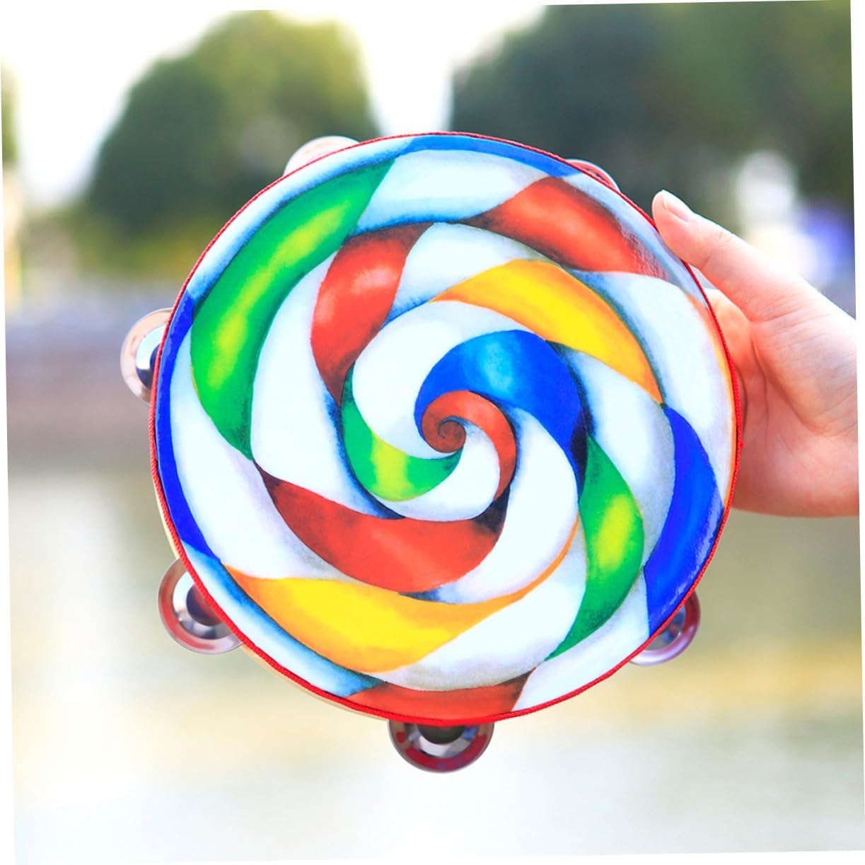 Giocattolo a percussione: colpisci e scuoti il tamburello, produce un suono e allena la capacità di presa, Tamburello per tamburo da 8 pollici - può esercitare i bambini ed è un fantastico giocattolo per bambini Tamburo a campana - materiale selezionato che non è facile da deformare o rompere, strumento a tamburello Musica a tamburello - la pregevole fattura garantisce praticità e durata, giocattolo per l'apprendimento musicale giocattolo musicale per - colori vivaci, motivo di stampa molto bello, perfetto per tamburi a doppia faccia