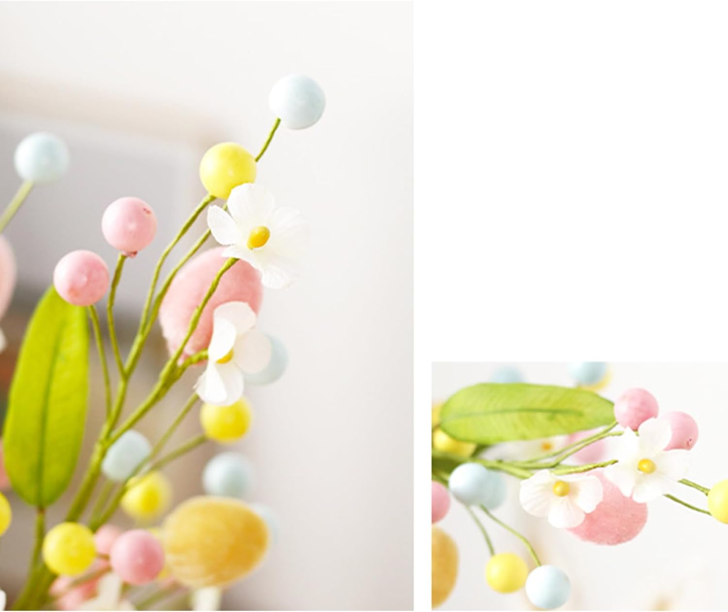 Gli spray pasquali artificiali presentano uova di Pasqua maculate in colori pastello accentate con grandi e bacche abbinate. luminoso e festoso, ti danno generale felicità le uova di Pasqua e le bacche sono realizzate in schiuma. Tutti gli steli sono in filo metallico e avvolto con nastro floreale marrone, pieghevole e flessibile, in modo da poter facilmente organizzare per soddisfare le vostre esigenze di decorazione Ogni stelo floreale primaverile misura appr. 50 cm di altezza. la larghezza dipende da come si forma il filo Quantità: la confezione include 3 spray pasquali artificiali con pastelli, uova di Pasqua e bacche. ogni ramo floreale primaverile ha circa molti uscite dallo stelo centrale Ampio utilizzo, è possibile utilizzare queste bacche di vite e rami di uova maculate per decorare la stanza e il cortile, è anche possibile decorare supporti, tessere ghirlande di Pasqua come amici e familiari