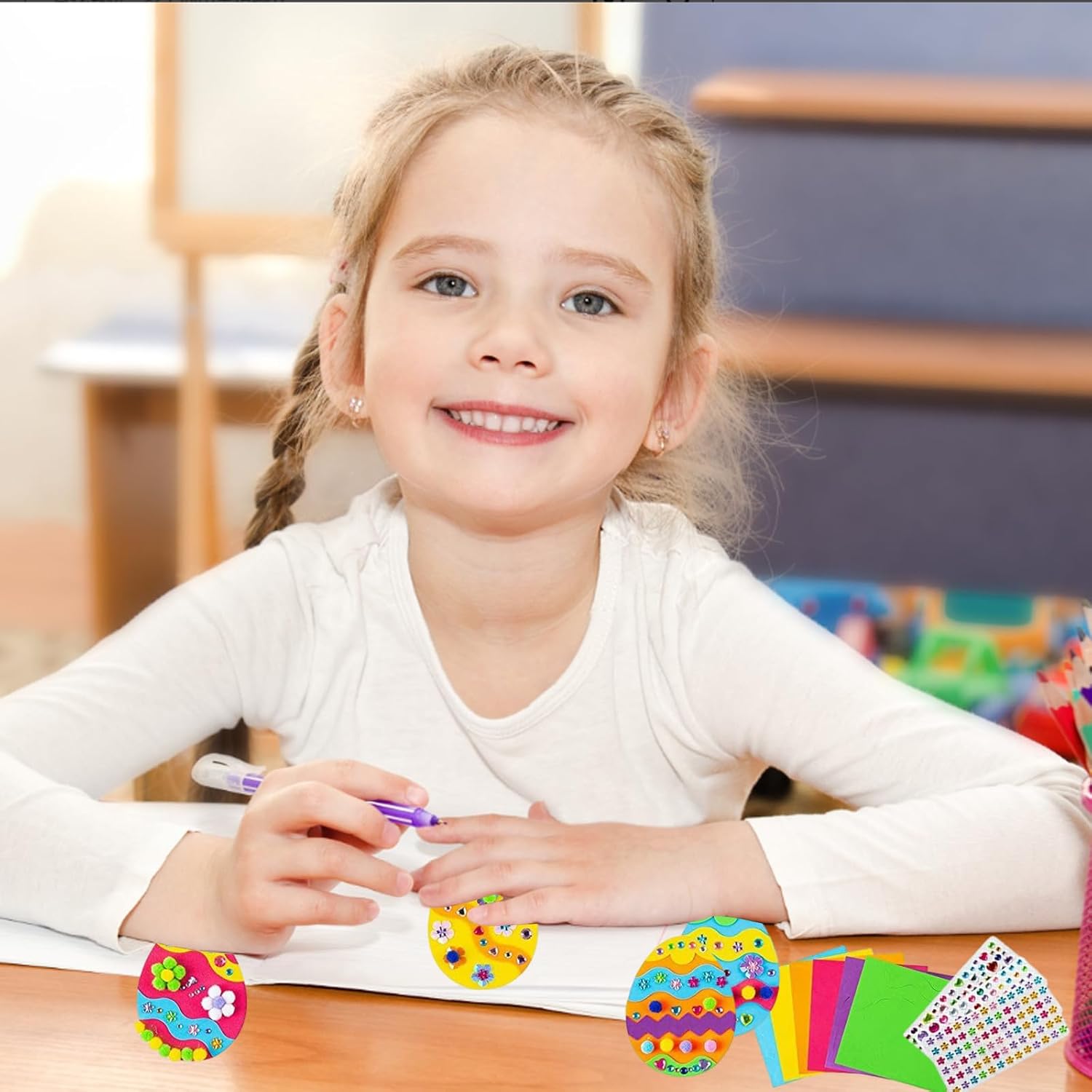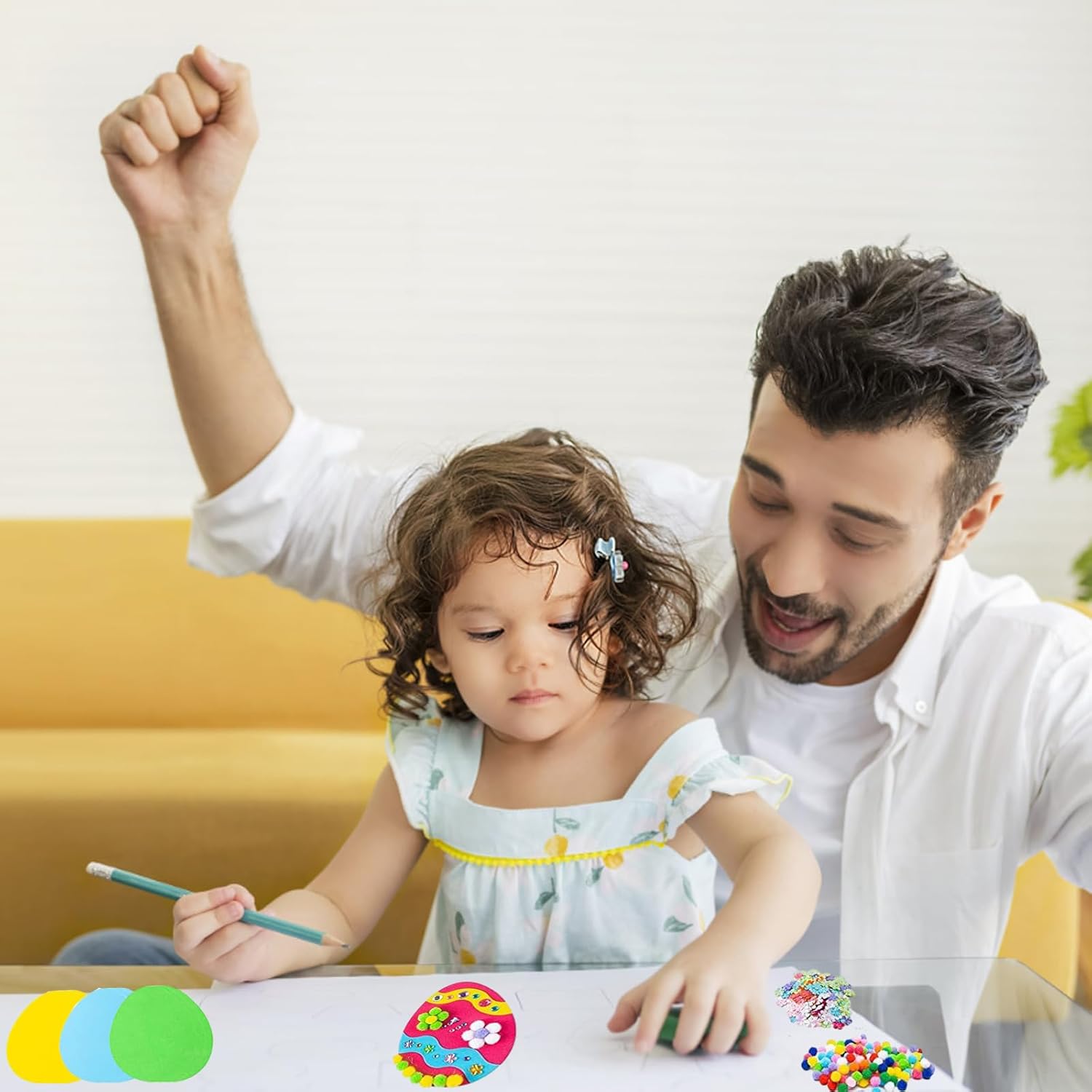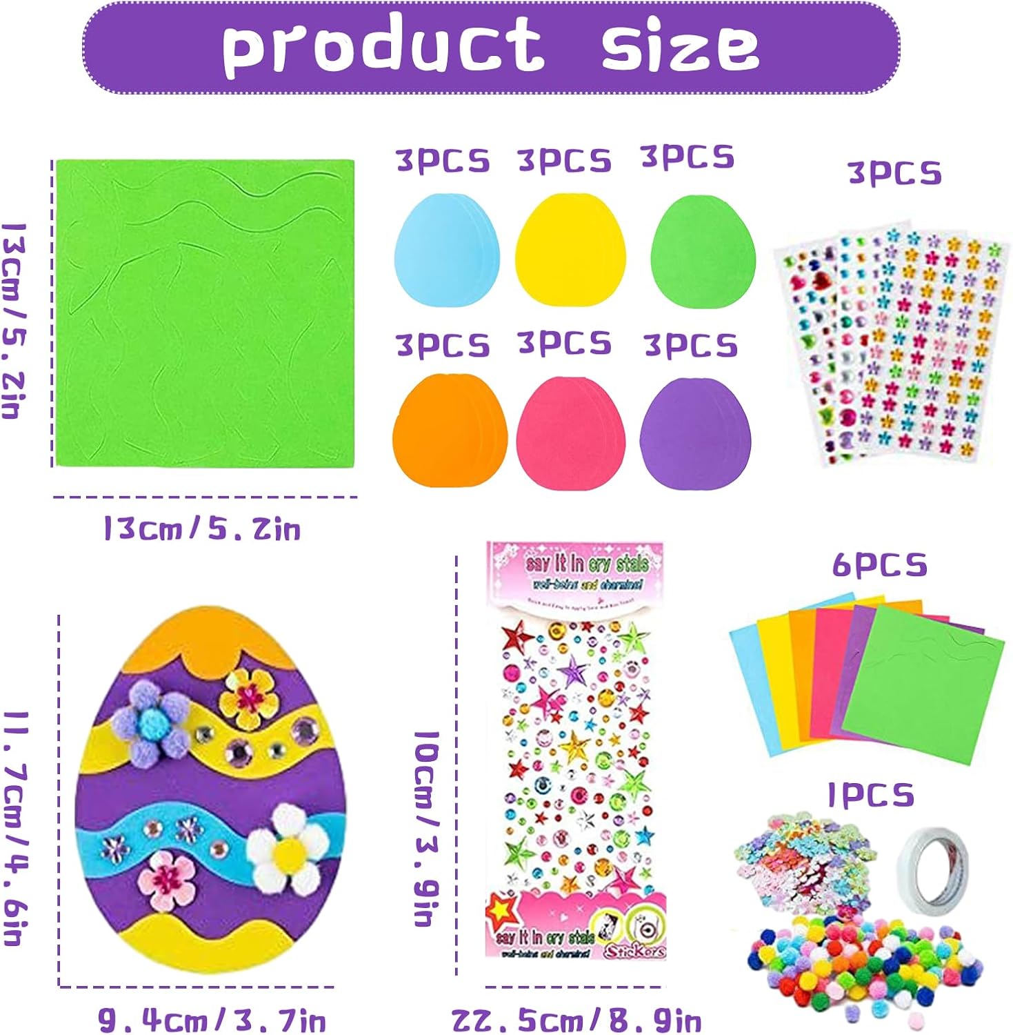 Set di uova di Pasqua: questo set di bricolage per Pasqua contiene 18 uova di Pasqua, 6 fogli di feltro colorato per scrapbooking, 3 fogli di adesivi a rombo, 1 rotolo di nastro biadesivo, molte paillettes floreali e pompon colorati. Divertimento pasquale: questo set di artigianato pasquale viene fornito con molti accessori diversi, è la perfetta decorazione pasquale. Combinare liberamente la decorazione in gomma espansa per creare diversi design. Perfetto per artigianato pasquale. Fai da te per la Pasqua per bambini: dipingi con i bambini esclusive uova pasquali, stimola la creatività e l'immaginazione dei bambini. per creare una forte atmosfera pasquale. Questa è l'attività fai-da-te perfetta per le famiglie, goditi un bel tempo genitore-figlio. Sviluppa l'immaginazione: questo set di artigianato pasquale è adatto per bambini a partire dai 3 anni e può allenare le abilità pratiche e la creatività dei bambini. I bambini sotto i 3 anni devono essere accompagnati dai loro genitori! Non ingoiare gli accessori! Vari usi: il set fai da te pasquale può stimolare la creatività dei bambini nella loro immaginazione, ideale per lavori scolastici, feste, fai da te a casa, può anche essere trasmesso a Pasqua a familiari e amici.