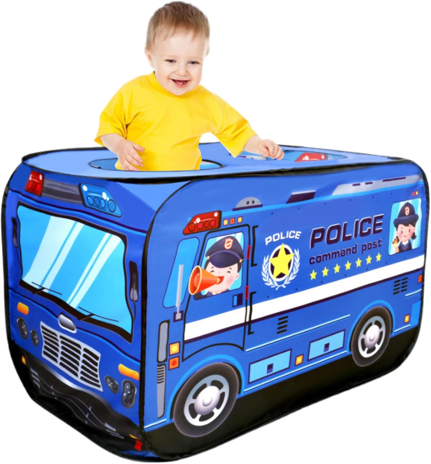 Facile da usare: la tenda up per bambini presenta un design pop-up per un montaggio facile e veloce e un design con porta avvolgibile per una facile apertura e chiusura..La parte superiore adotta un design di ventilazione a doppio lucernario, che è traspirante e ventilato e può anche stare in piedi. Versatilità: che tratti di un appuntamento di gioco, di un'avventura in giardino o di un accogliente angolo lettura al chiuso, la tenda Kids Up offre al tuo bambino intrattenimento senza fine e privacy. Design spazioso: misurando 112x75x70 cm/44,09x29,53x27,56 pollici, la tenda Kids up ha un ampio spazio interno per consentire a più bambini di giocare insieme comodamente;.è pieghevole per riporlo e facile da trasportare. Aspetto carino: la tenda da gioco pieghevole presenta un vivace design da auto della polizia che attira facilmente l'attenzione dei bambini e li immerge in attività divertenti e fantasiose. Materiale in tessuto Oxford: la tenda per auto della polizia è realizzata in tessuto Oxford, delicato sulla pelle e traspirante, non restringe né sbiadisce, è resistente all'usura e robusto, garantendo flusso d'aria e comfort durante il gioco..Questa tenda ha pali robusti e cuciture rinforzate per un uso a lungo termine.