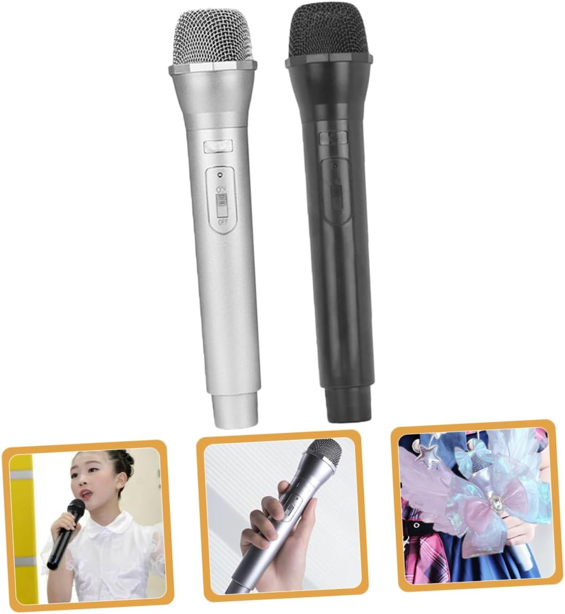 Microfono simulato: il giocattolo con microfono finto è adatto per il gioco quotidiano, spettacoli teatrali, feste e altre scene, microfono per giochi di ruolo Microfono finto di scena: il microfono finto di scena è leggero, ha dimensioni compatte, puoi portarlo ovunque con facilità, accessorio per cosplay da festa Di microfono: realizzato in materiale plastico, il supporto del microfono è pratico e robusto per un lungo periodo di utilizzo, finto di microfono Microfono realistico di scena: non solo un microfono pratico, ma anche un bellissimo oggetto di scena per aggiungere punti salienti alla tua performance, oggetto di scena per microfono di simulazione Simulazione di microfono per feste: è facile da trasportare e puoi portarlo nello zaino quando stai pianificando una festa all'aperto per ragazze e ragazzi, microfono finto