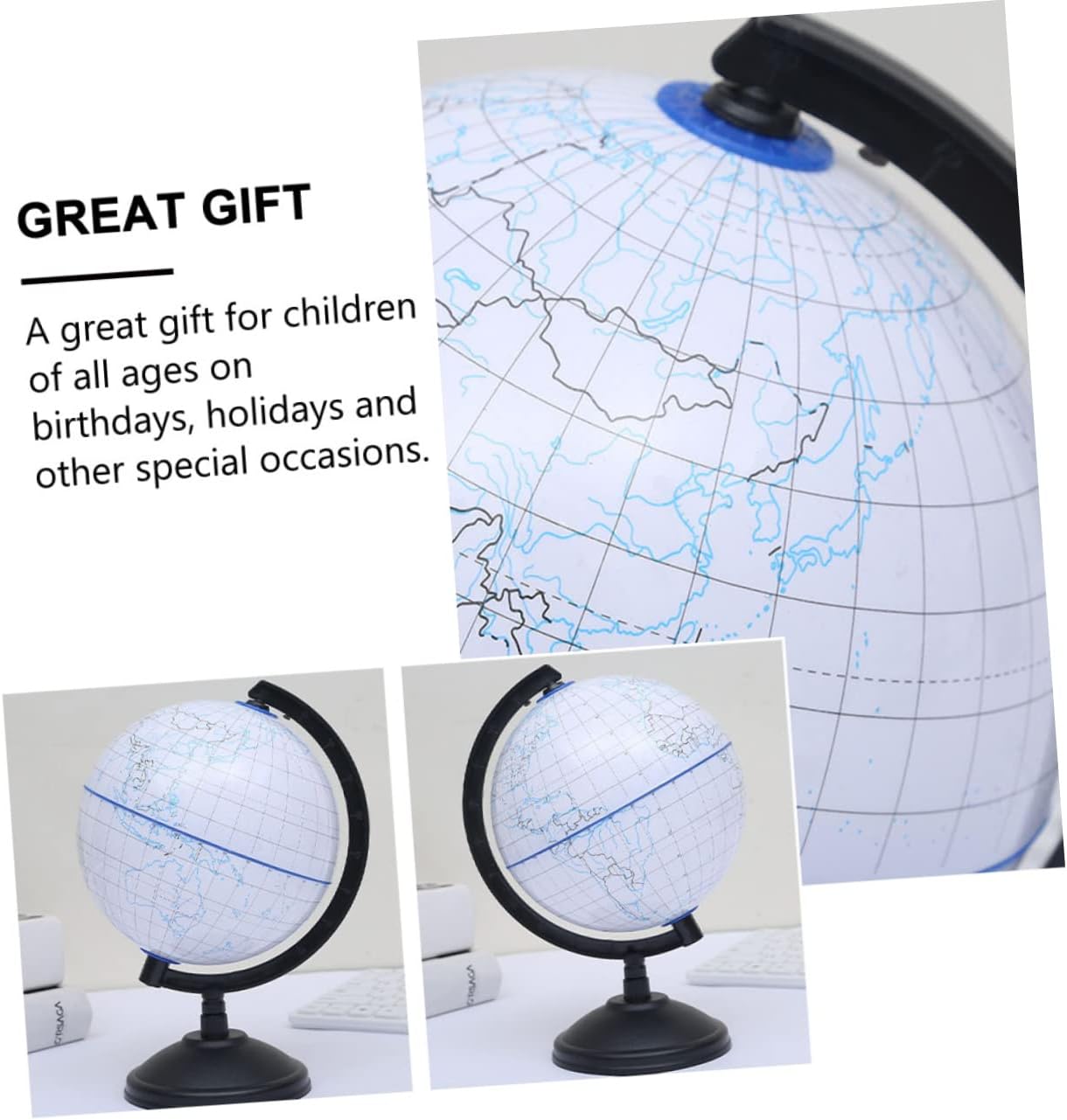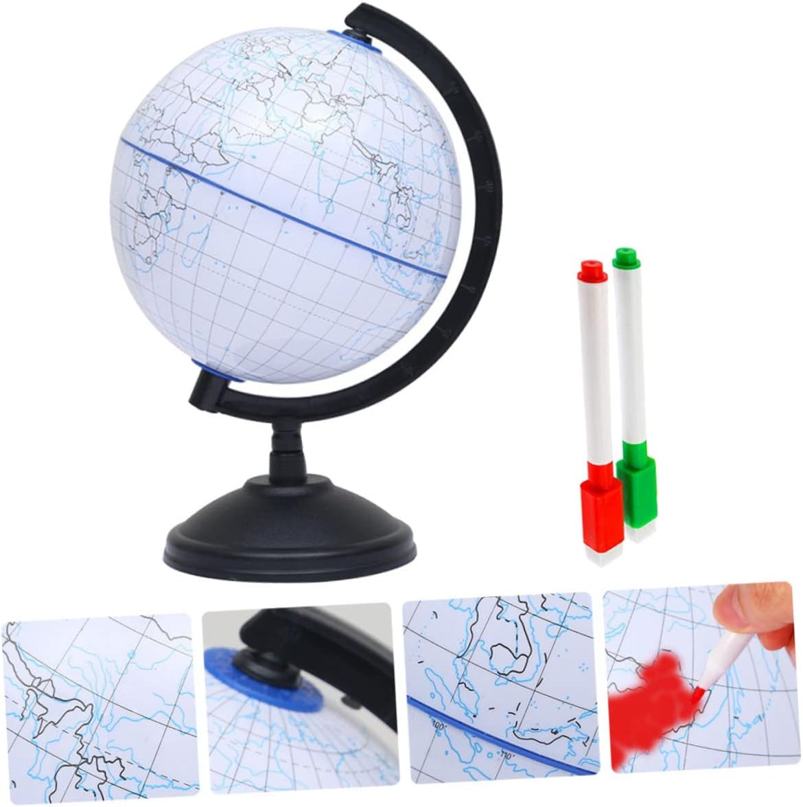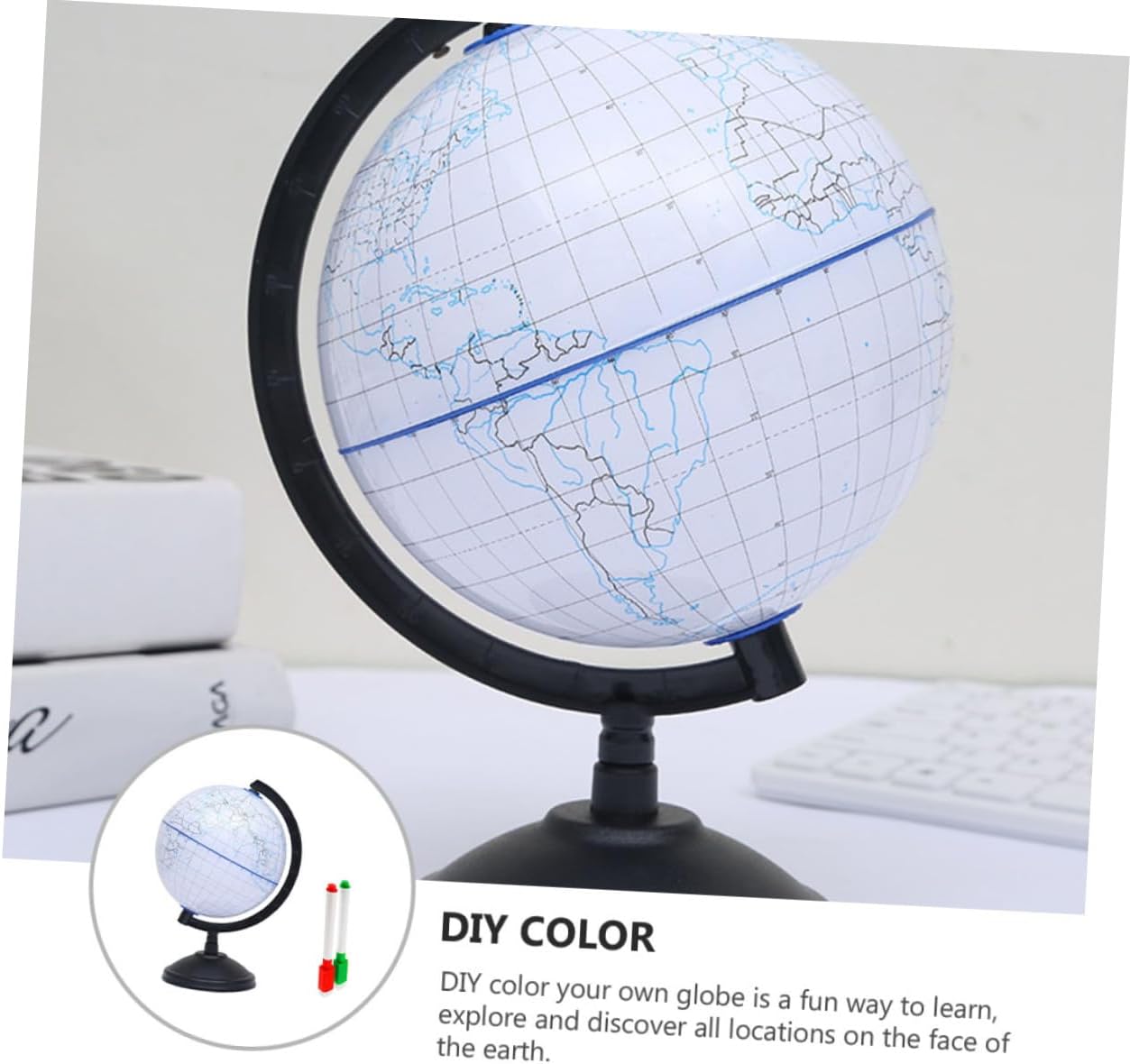 Mappamondo terrestre finito: struttura: telaio in plastica e supporto per garantire stabilità sul tavolo, mappamondo per bambini. Mappamondo educativo: con contorni di masse continentali e oceani, questo mappamondo didattico consente ai bambini di continenti, paesi e oceani in tutto il mondo, globi geografici educativi. Giocattolo per l'apprendimento della geografia dei bambini: il mappamondo vuoto è un buon prodotto educativo che può portare i bambini ad apprendere la conoscenza della geografia e la comprensione del mondo, globo didattico incompiuto. Colora il tuo mappamondo: è ampiamente utilizzato bambini che imparano l'educazione per la casa, l'ufficio, il negozio, la decorazione della scrivania, il mappamondo incompiuto. Mappamondo fai da te per bambini: colora il tuo mappamondo, quindi esponilo su una scrivania, una cassettiera, un tavolo o scaffale per aggiungere un po' di strabiliante a qualsiasi spazio , mappamondo didattico per bambini.