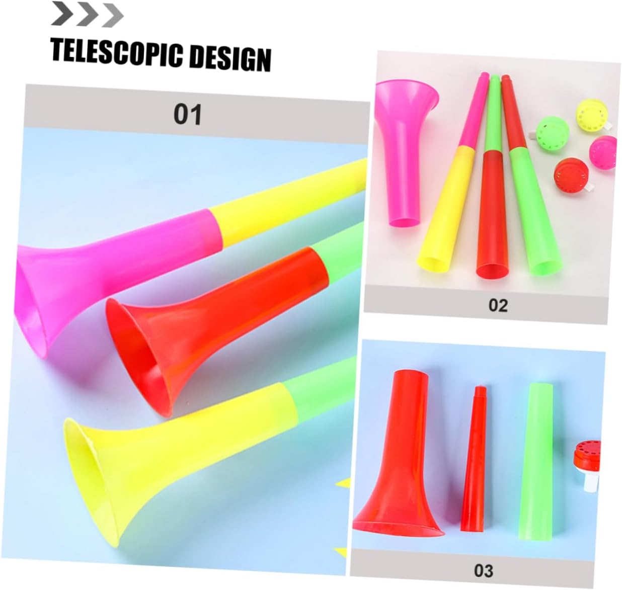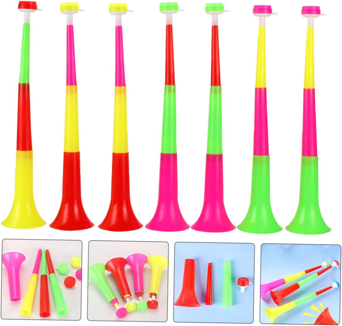 Tromba di plastica: con design telescopico, puoi estendere questo giocattolo a forma di corno quando fai il tifo per la festa e piegarlo, tromba giocattolo per Uso multifunzionale: oltre all'uso del clacson dello , ma anche come strumento di comunicazione turistico, all'aperto, per organizzare attività, giocattoli di plastica per il rumore del clacson, giocattoli per il clacson da calcio Giocattolo che produce rumore da calcio: realizzato in materiale plastico, i giocattoli finti a forma di tromba sono sicuri e allegri, puoi provare una sensazione di gioco divertente, piccoli giocattoli a forma di tromba Design telescopico: il corno adotta un design telescopico, che può regolare liberamente la lunghezza, comodo stoccaggio e trasporto, corno da tifo, giocattolo per tromba per Tromba da cheerleader per : questa tromba è un meraviglioso divertimento visivo per decorare le tue feste, sono strumenti rumorosi per la tua festa, oggetti di scena a forma di corno