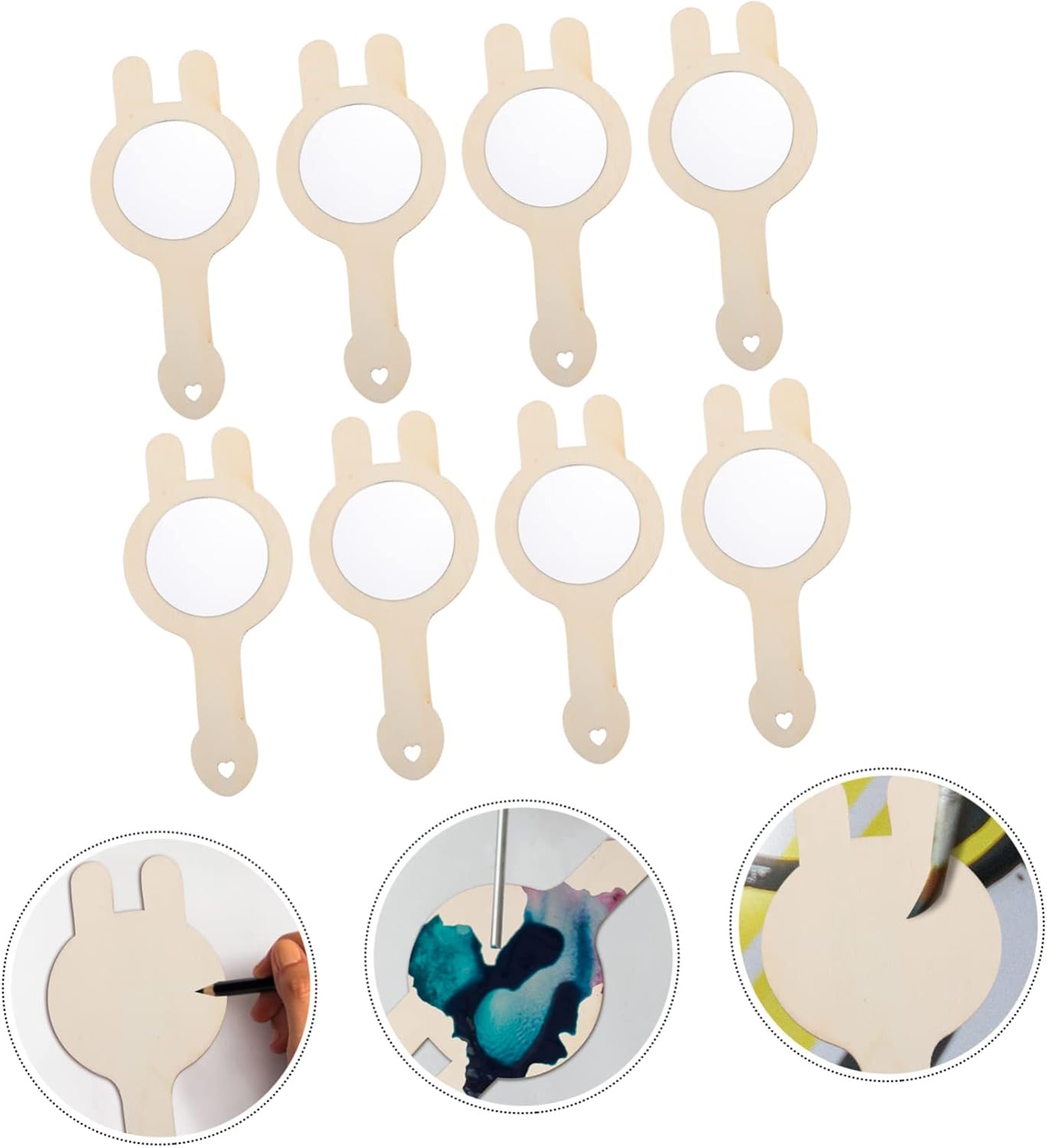 Giocattoli per bambini: ampio utilizzo: ottimi articoli fai da te per migliorare la tua abilità pratica e creatività. Specchi cosmetici in legno: ti divertirai nel processo di fai da te e può essere un buon regalo che mostra il tuo amore dopo aver finito. Specchio da tavolo: esercita la coordinazione mano-cervello dei bambini e i movimenti fini delle dita. Specchio portatile: con una modellazione adorabile, puoi realizzare creazioni delicate e divertenti aggiungendo alcune decorazioni. Specchio per il trucco da viaggio: guida le associazioni dei bambini a modellare le cose, stimolare l'abilità pratica dei bambini ed esercitare l'abilità creativa e logica dei bambini.