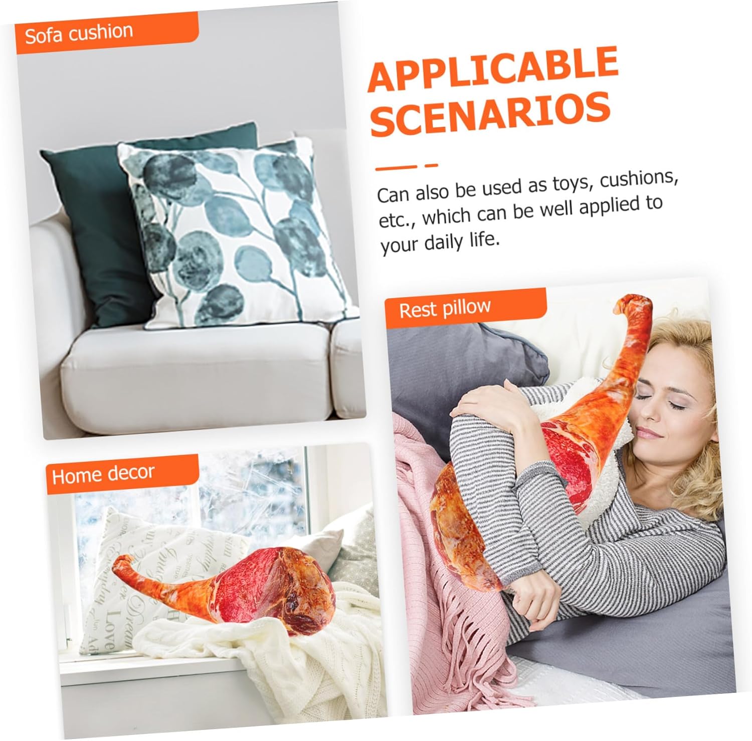 Cuscino da lancio: realizzato in materiale morbido, sicuro e confortevole, delicato sulla pelle, non facile da rompere o deformare, , cuscino con design a prosciutto Cuscino per divano: cuscino per dormire, se vuoi dormire, puoi appoggiare la testa sul suo corpo, per un comfort extra, cuscino per il cibo Peluche a forma di prosciutto: eccellente lavorazione, questo cuscino avvolgente è curato in ogni dettaglio per conferirgli un aspetto vivido, cuscino decorativo a forma di prosciutto Cuscino che il prosciutto: design divertente a forma di prosciutto, sembra così interessante, piacerà alla gente, una scelta per la persona amata, cuscino che il prosciutto simulato Cuscino di prosciutto imbottito: realizzato in materiali di cotone pp morbidi e morbidi, per offrirti un tocco confortevole, peluche di prosciutto