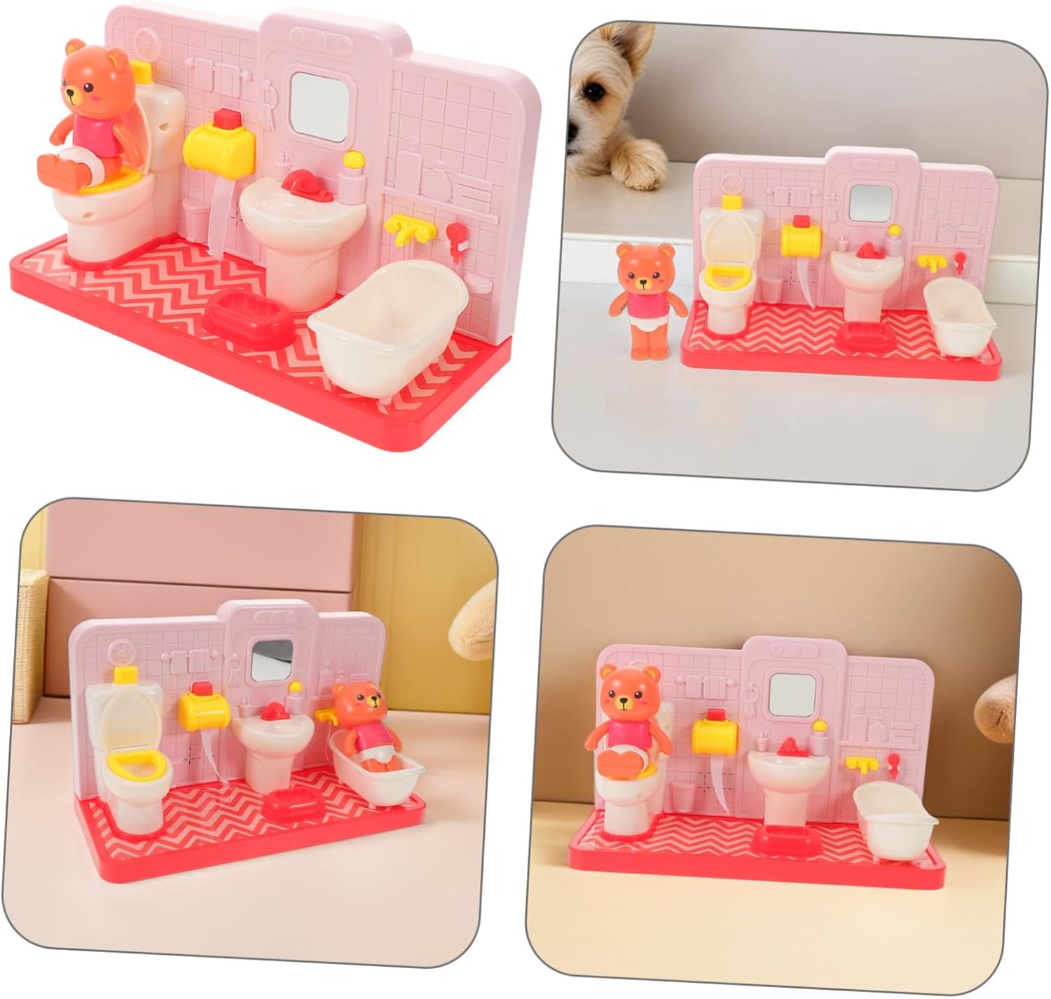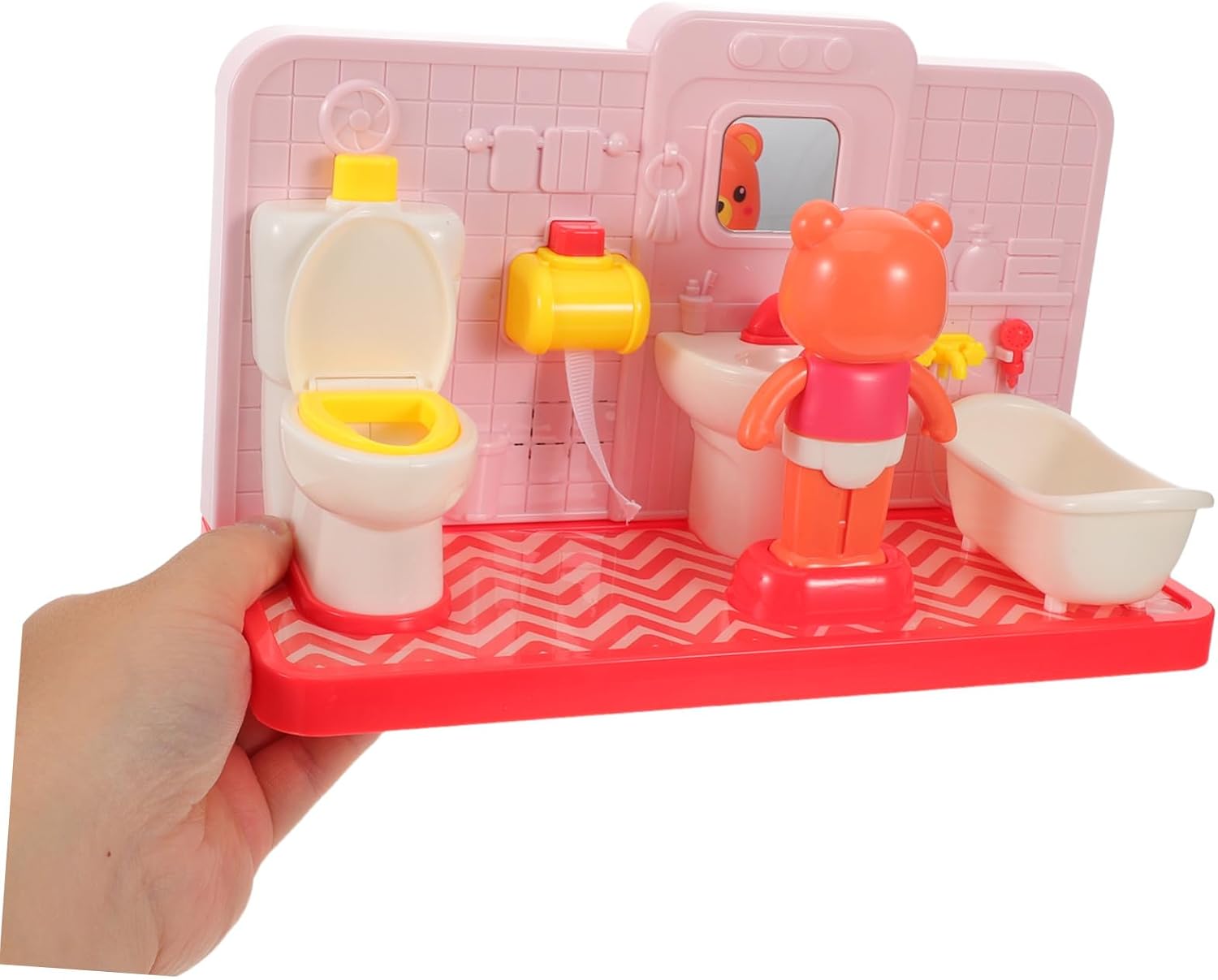 Pratico e portatile: la struttura compatta del mini set da gioco per wc/giocattolo per l'addestramento al vasino per consente ai di giocare e imparare l'igiene del bagno ovunque e in qualsiasi momento, aumentando l'indipendenza, mini set da gioco per wc, divertente giocattolo per wc Giocattoli educativi per il bagno: piccoli giocattoli ergonomici per vasino/mini mobili per case delle bambole che facilitano la comprensione, l'uso e lo sviluppo della sicurezza dei nel padroneggiare le routine del vasino, giocattolo per il bagno dei , giocattoli per vasino Design a bassa manutenzione: i mobili per l'addestramento al vasino/set da gioco per wc in miniatura presentano superfici facili da pulire, favorendo momenti di gioco facili e salutari per e tutori, giocattolo per l'addestramento al vasino per , finto bagno da casa delle bambole Imparare giocando: set da gioco per l'addestramento al vasino / set da gioco educativo per il bagno promuovono la comunicazione e il lavoro di squadra, sviluppando competenze essenziali tramite esercizi di gioco di finzione in bagno condiviso, set da gioco per il bagno dei , vasino giocattolo Pulizia facile: accessori da bagno resistenti per case delle bambole / grazioso giocattolo da bagno a forma di orso semplificano la pulizia di routine, consentendo ai di esplorare, imparare e divertirsi in tutta tranquillità, finti giocattoli da bagno, giochi di finzione per il bagno