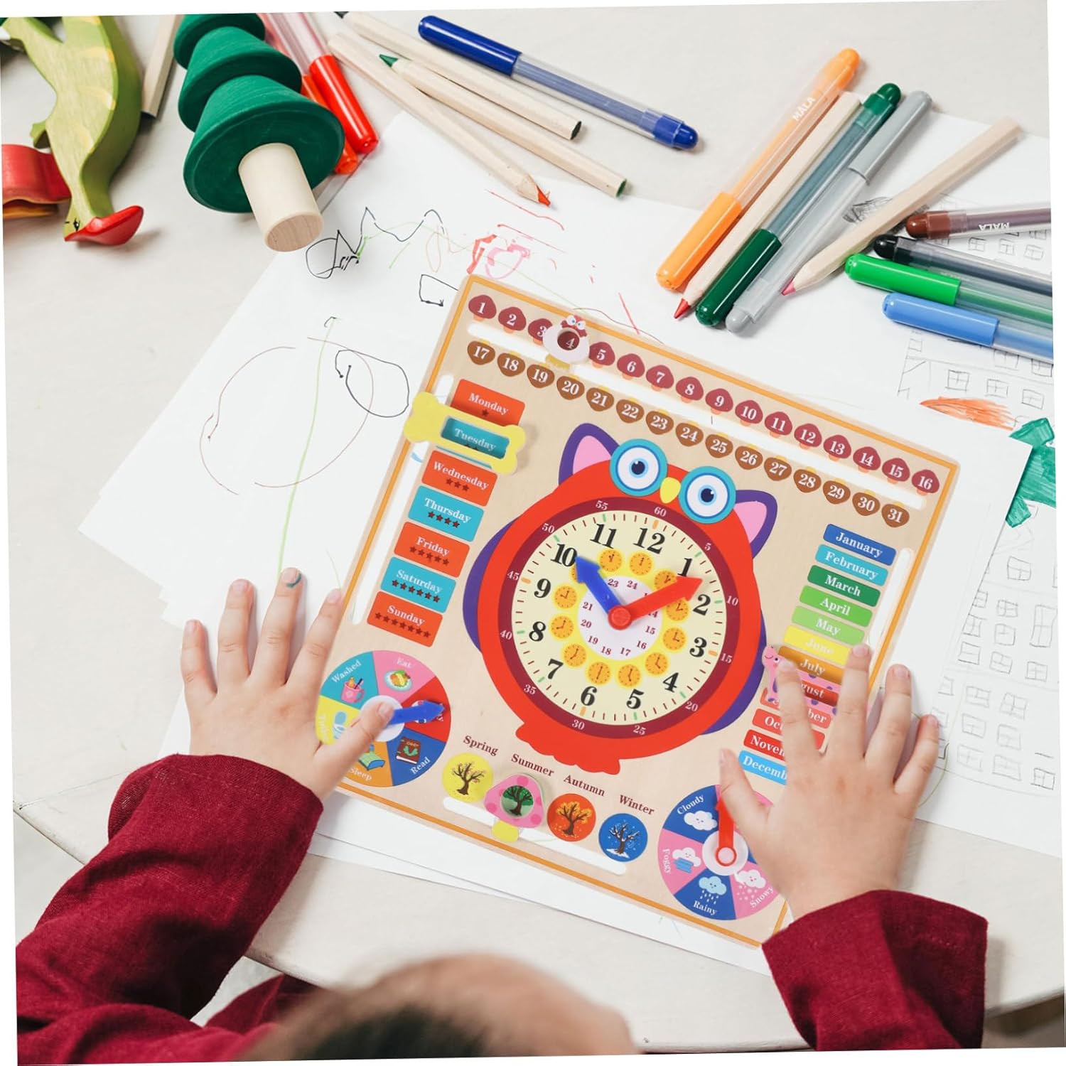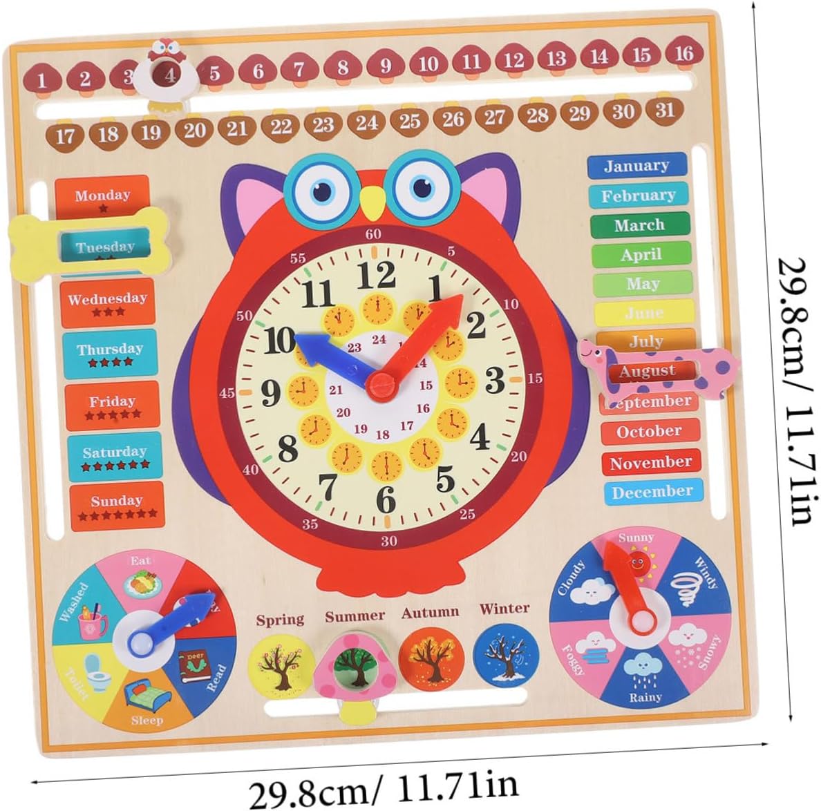 Orologio cognitivo: il giocattolo educativo è utile per insegnare ai bambini l'immaginazione e la matematica e insegnare loro a leggere l'ora Orologio a forma di gufo: giocattolo educativo multifunzionale, può aiutare i bambini a imparare di più sui colori, sul tempo e sui giocattoli per il riconoscimento del tempo Orologio analogico per: promuove la coordinazione occhio-mano, abilità logiche, abilità creative e capacità di apprendimento, dando al bambino una comprensione concettuale del tempo Giocattolo dell'orologio: ben realizzato con materiali in legno naturali e robusti, sicuro e pratico per un uso duraturo, giocattoli del tempo per i più piccoli Orologio didattico: i quadranti aiutano i bambini a leggere l'ora e comprenderne il significato tempo in giovane età