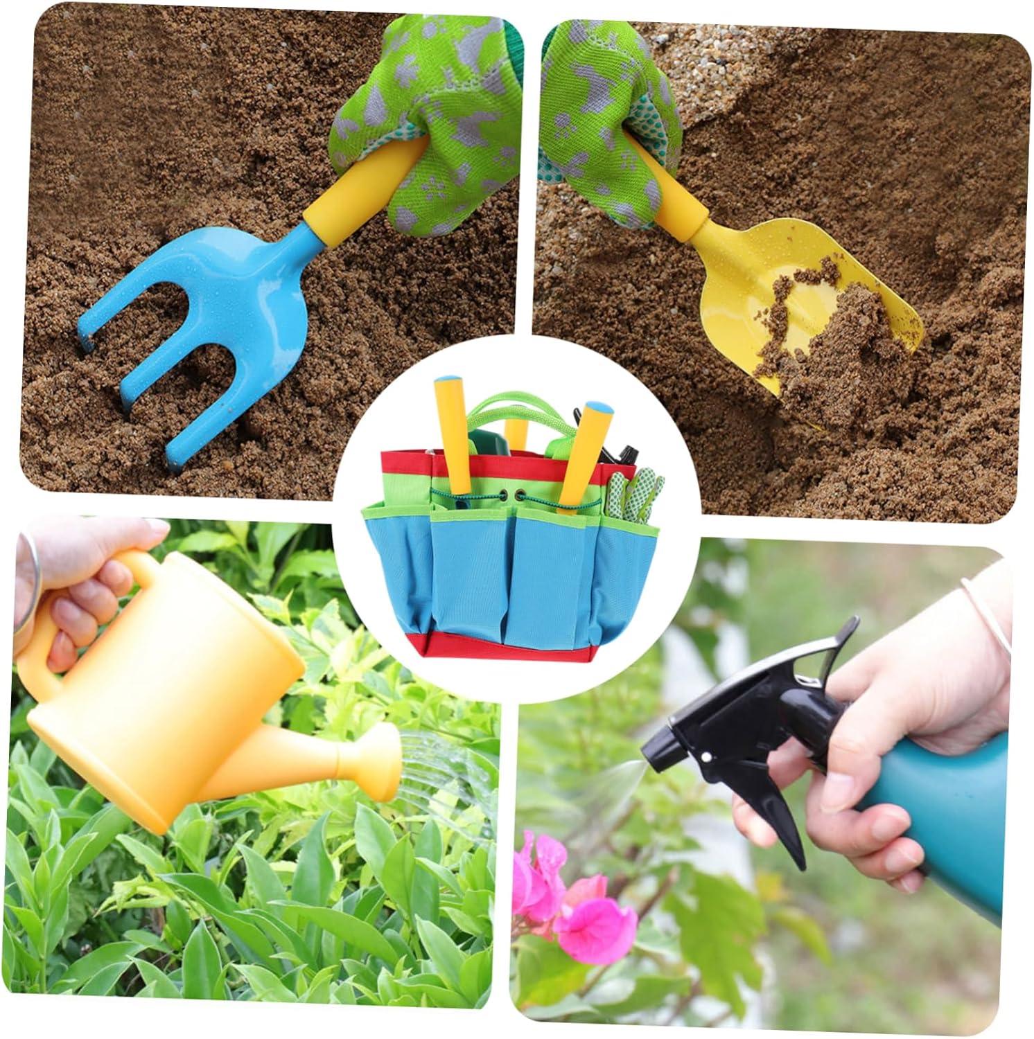 Pale da giardino per - Essendo un piccolo strumento portatile, è molto adatto per piccoli giardini e piante d'appartamento. Piccoli attrezzi da giardino con pala e rastrello per: migliorano notevolmente l'efficienza del giardinaggio, uno strumento essenziale per te, borsa per riporre gli attrezzi per giocattoli per bambini: il set da giardino contiene più strumenti in grado di soddisfare le tue diverse esigenze. - Annaffiatoio da giardino - realizzato con materiali di alta qualità per un uso duraturo, fornirà ai tuoi bambini un'esperienza di utilizzo, set da giardino giocattolo per bambini - la meravigliosa lavorazione garantisce un giardinaggio impeccabile ed efficiente