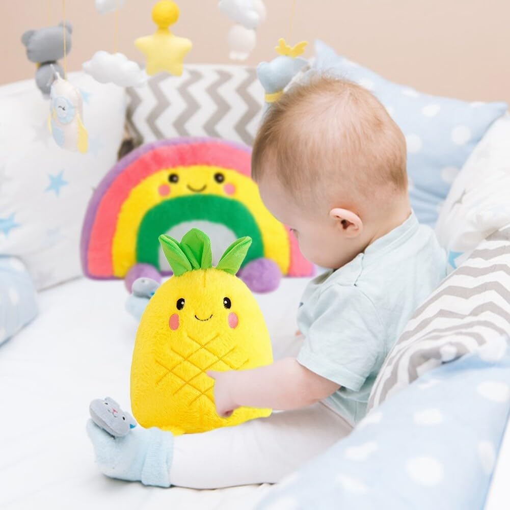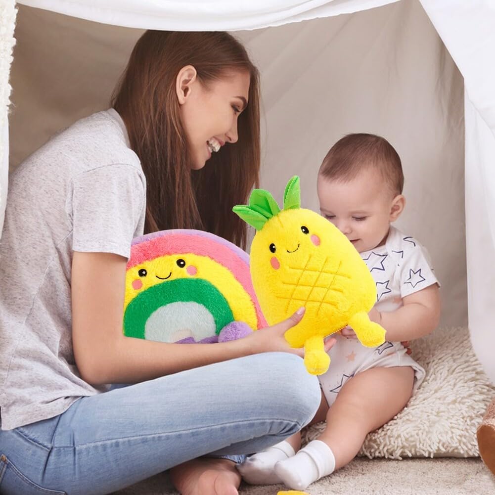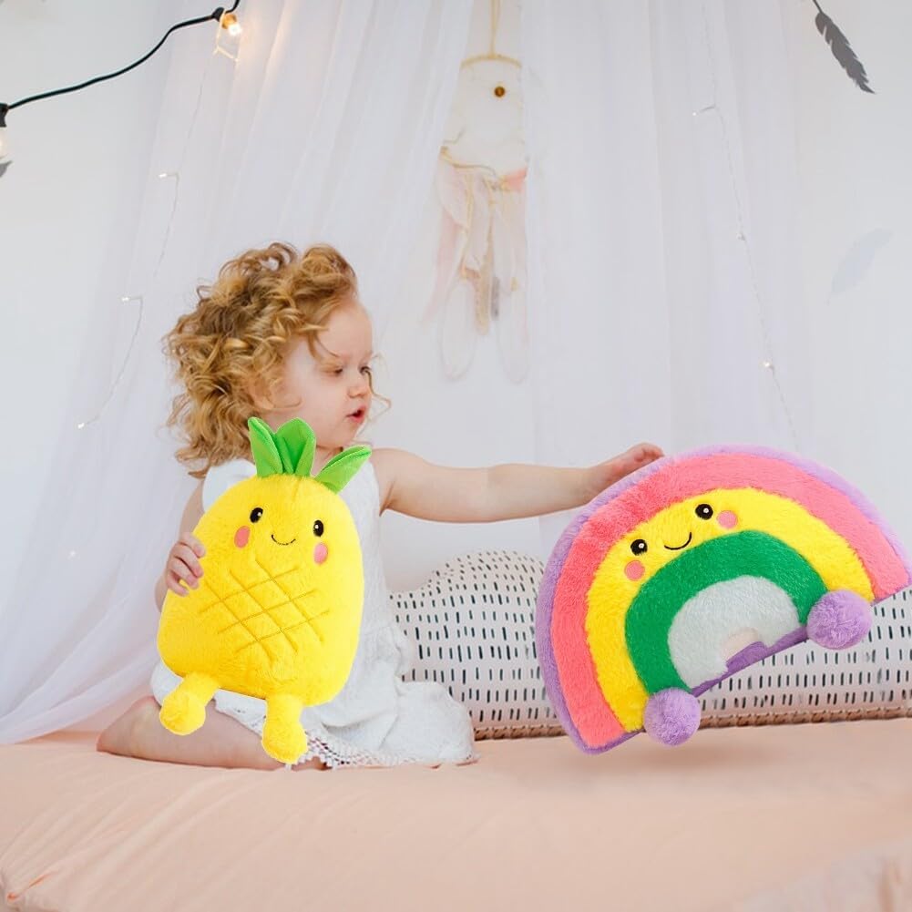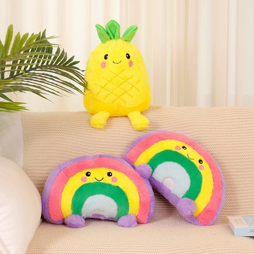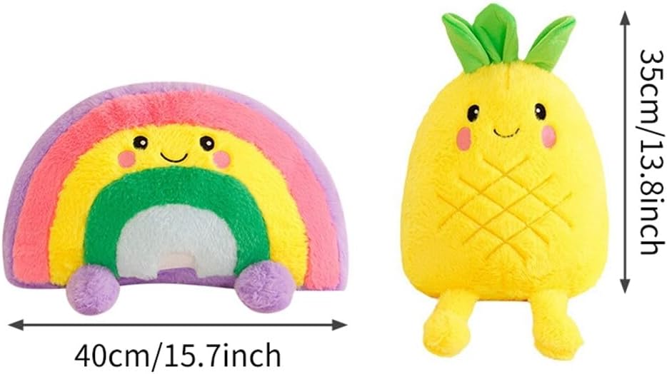 Giocattoli di peluche: questo giocattolo di peluche presenta un design unico, con un'espressione facciale amichevole e carina. Il set è tridimensionale e pieno di creatività. Può essere utilizzato non solo come decorazione per la casa, ma anche come cuscino per la camera da letto, come cuscino per il divano o come cuscino per lo schienale per lo studio. Decorazione spaziale: questo giocattolo di peluche è adatto per casa, ufficio, auto, studio, caffetteria, centro commerciale o biblioteca. Può essere posizionato sul divano, sul letto, sul comodino, sulla scrivania, sullo scaffale o in una vetrina. Può arricchire l'effetto decorativo del tuo spazio. Dimensioni e stile: l'altezza di questi peluche è di 35 cm (stile ananas) e di 40 cm (stile arcobaleno). È possibile scegliere tra stile ananas e stile arcobaleno. I colori sono vivaci e la superficie è liscia. ❀【Morbido e durevole】Questo giocattolo in peluche è durevole e ha un tocco morbido e confortevole. Non farà male alle tue mani. L'interno è riempito con cotone PP, che è elastico, non si deforma facilmente e non sbiadisce. Regalo di Natale: i peluche sono adatti per bambini e adulti. Possono essere regalati ad amici, compagni di classe, familiari, bambini o colleghi in occasione di Natale, Ringraziamento, San Valentino, compleanni, feste, celebrazioni, balli e altri eventi di vacanza.