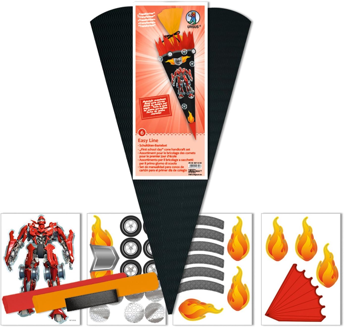Schultüte Selbstb e realizzalo Altezza: ca. 68 cm/diametro: ca. 20 cm Motivo: Transformers Il set artigianale contiene tutto il necessario per decorare gli oggetti schultüte Con istruzioni fai da te e tutti gli elementi sono pretagliati