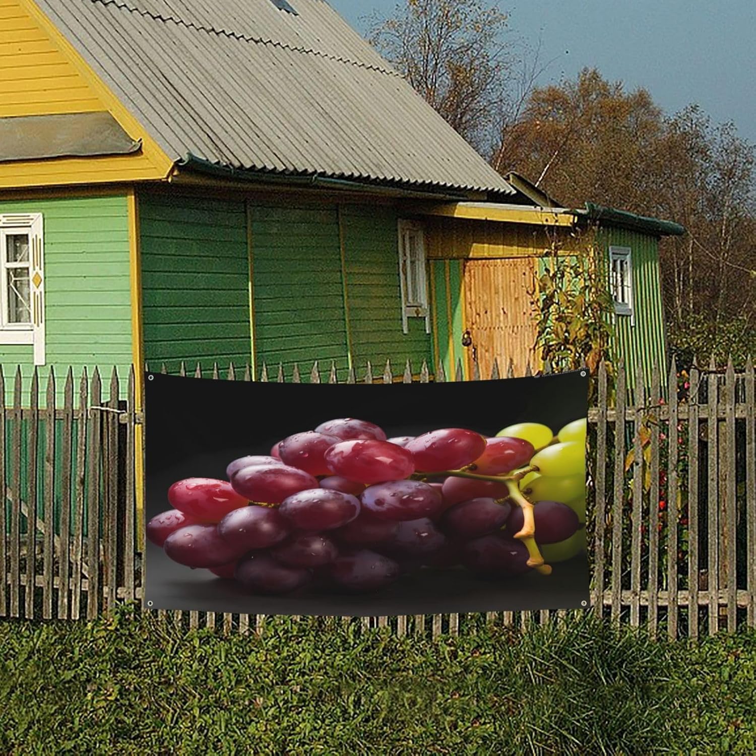 Uva - Banner stampato con sfondo personalizzato per eventi - Decorazione per esterni/interni con occhielli in metallo per festival e feste