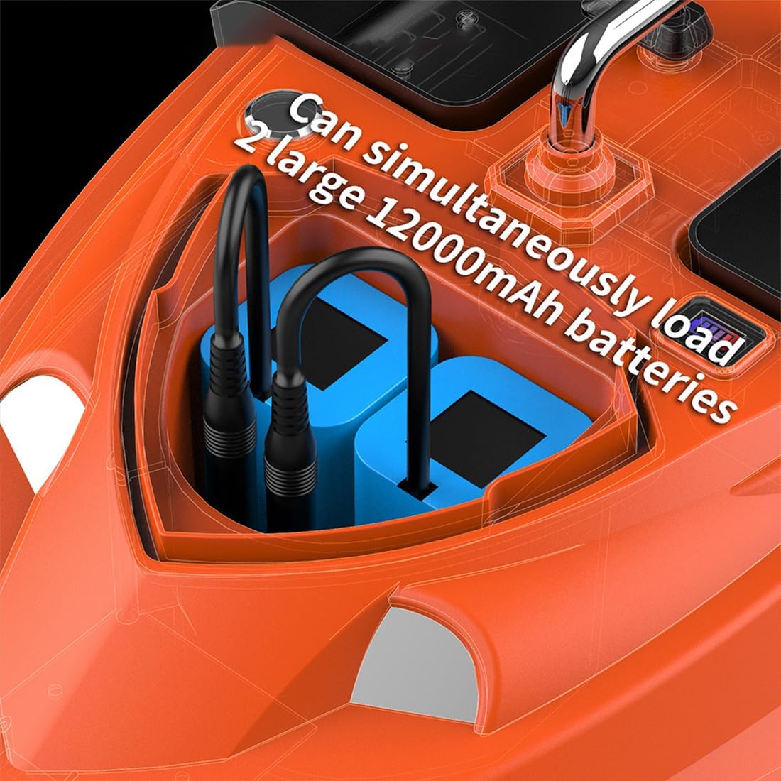 Correzione automatica del percorso: giroscopio integrato per la correzione dell'imbardata e modalità di crociera (velocità costante e crociera waypoint) per una pianificazione impeccabile del percorso, anche in acque difficili GPS con 160 punti di adesco: memorizza fino a 4 zone di pesca e 160 punti di esca utilizzando il doppio posizionamento Beidou+GPS. Le caratteristiche di sicurezza come il ritorno a un tasto, il ritorno automatico della batteria scarica e il recupero della perdita di segnale garantiscono un funzionamento affidabile Capacità della barca: quattro scomparti per esche controllati in modo indipendente forniscono 3 kg di esca in più punti in un solo viaggio, massimizzando l'efficienza senza ricaricare Integrazione Fish Finder: le doppie antenne ad alto guadagno garantiscono un controllo remoto stabile di 500 m, il monitoraggio della distanza in tempo reale e l'integrazione opzionale dell'ecoscandaglio per il massimo controllo della pesca Batterie doppie: le doppie linee di alimentazione evitano interruzioni, mentre le luci di navigazione luminose (modalità costante/lampeggiante) e gli avvisi di batteria scarica garantiscono un funzionamento sicuro e prolungato dopo il tramonto
