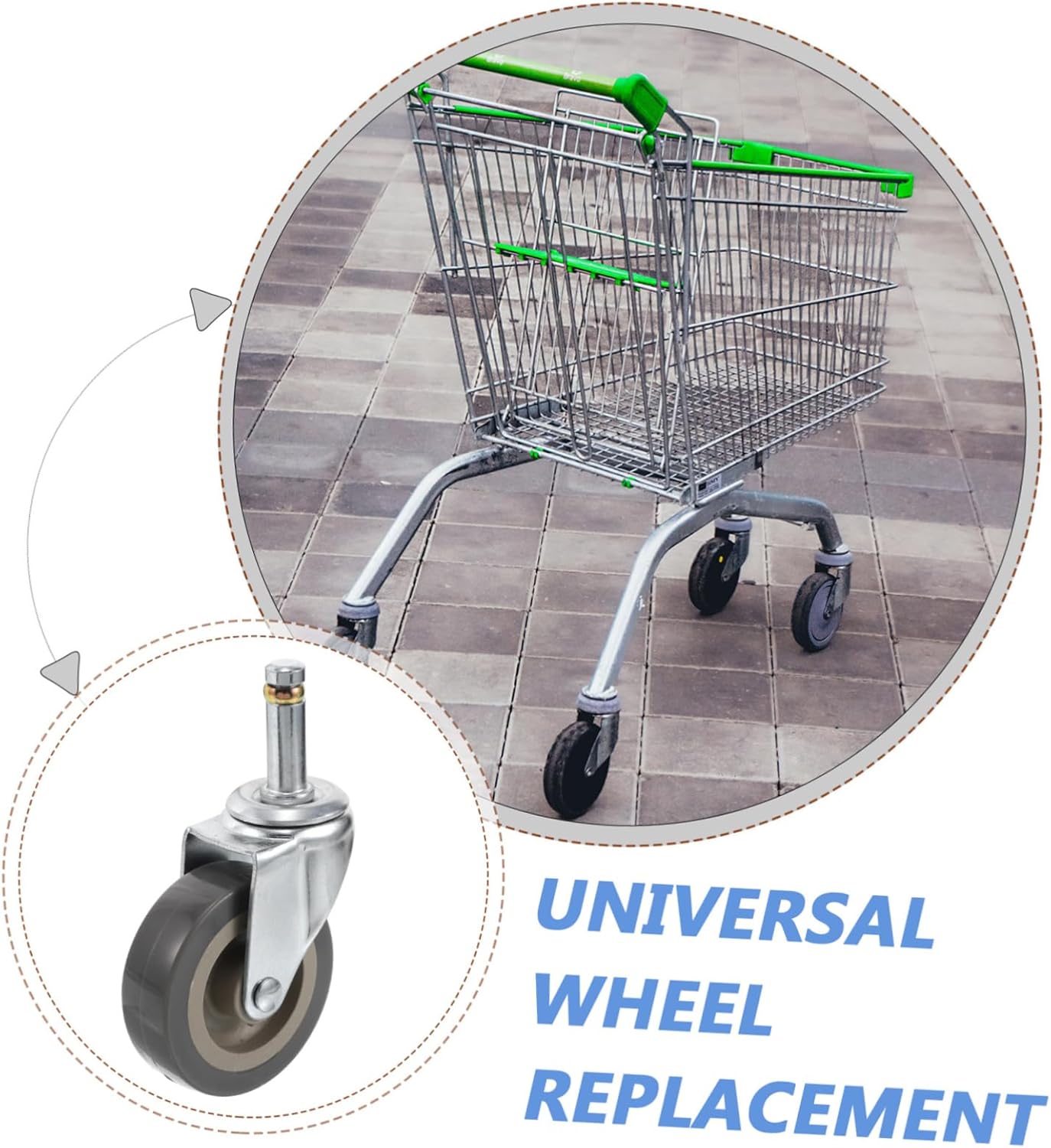 Design silenzioso: i materiali che riducono il rumore garantiscono un utilizzo silenzioso e migliorano l'esperienza complessiva dell'utente. Ruote di ricambio per auto, pezzi di ricambio robusti Facile sostituzione: le ruote sono progettate per una facile sostituzione, consentendo agli utenti di eseguire facilmente gli interventi di manutenzione. Sostituzione ruota bagagli, ruote sostitutive Installazione semplice: le ruote sono progettate per un'installazione facile e rapida, rendendo conveniente la sostituzione. ruote per bagagliaio, accessori per ruote di scorta Applicazione versatile: adatto a vari carrelli della spesa, carrelli della spesa e carretti a mano. Queste ruote soddisfano requisiti diversi. ruote piccole per carrello, ruote sostitutive per carrello della spesa Bassa rumorosità: grazie al loro design silenzioso, queste ruote riducono il rumore di funzionamento, garantendo un'esperienza di acquisto silenziosa. Sostituzione delle ruote del carrello della spesa, rotelle piroettanti