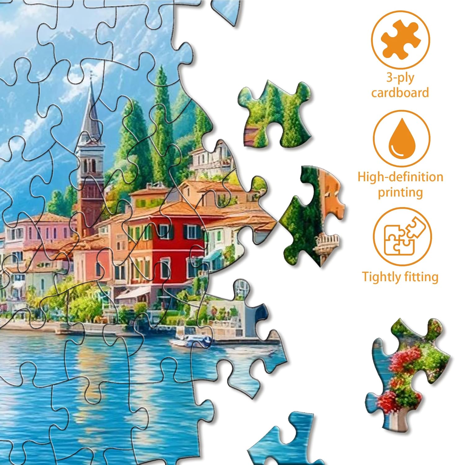 Supporto per i pezzi mancanti: se mancano dei pezzi del puzzle, faccelo sapere e lavoreremo con te per risolvere il problema al più presto. Un pittoresco paesaggio di un villaggio accanto a un lago, circondato da montagne e alberi verdi. Case colorate si affacciano sull'acqua calma, con fiori in vaso che ornano il sentiero. La scena, ispirata alla natura e alla bellezza del mondo reale, è stata trasformata in un puzzle per celebrare la serenità e l'armonia. Puzzle per adulti da 1000 pezzi - Dimensioni finali: 41 x 80 cm. Migliora la concentrazione - Sfida la pazienza e il pensiero logico, offre un'esperienza rilassante e piacevole e coltiva il tuo spirito. Una volta completato, proverai un senso di realizzazione e potrai persino esporlo come elemento decorativo per migliorare l'estetica del tuo spazio. Motivi stampati ad alta definizione - Stampa ad alta definizione per dettagli vividi e realistici. Puzzle da 1000 pezzi per adulti con tecnologia di stampa ad alta definizione, il puzzle vanta colori intensi e motivi dettagliati che resistono allo sbiadimento. Una volta completato, assomiglia a un'opera d'arte. Materiale di alta qualità - Cartone di alta qualità per durata e resistenza alla rottura. Il cartone spesso garantisce che i pezzi del puzzle siano robusti e resistenti alla flessione. La lavorazione artigianale garantisce che ogni pezzo si incastri perfettamente e si colleghi senza intoppi, migliorando l'esperienza del puzzle. Presentato in una confezione regalo o da collezione, il puzzle viene fornito con un'apposita scatola di cartone per una comoda conservazione. Che sia per compleanni, Natale, Ringraziamento, Halloween o occasioni speciali, questo puzzle è un regalo unico per amici e familiari.