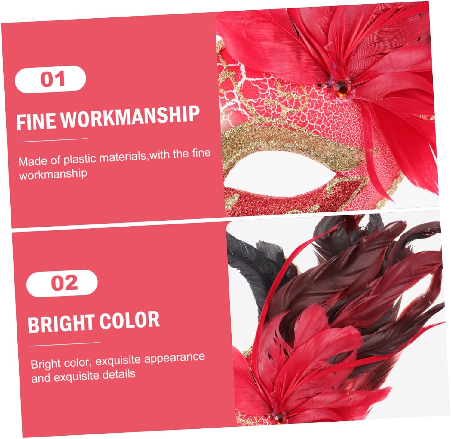 La confezione include 2 pezzi x 1 × maschera per travestimento Caratteristiche - Materiale: plastica, puntello decorativo per prestazioni in . - Le scene applicabili non sono limitate e con design 3D, ed è pratico e versatile utilizzare decorazioni per maschere chic. - Con il suo design delicato, ti farà sembrare fantastico e attraente nell'ornamento della maschera da festa. - Questa maschera è perfetta anche per partecipare a una festa di cosplay e una festa da ballo, maschera in maschera molto decorativa. – Il design creativo del pennacchio lo rende ideale per adulti e donne da utilizzare come decorazione per abiti in una festa di Halloween. - È realizzato con materiali di alta qualità, che è un accessorio di costume molto resistente. informazioni sul prodotto maschera per travestimento da donna, questa è una delle maschere che fa per te. Maschera di Halloween Stai cercando una maschera per feste in maschera alla moda ma conveniente? Sì, non cercare oltre! la nostra bellissima maschera per feste in maschera deve soddisfare le tue esigenze. Abbigliamento vintage, attirerai molta attenzione tra la folla quando lo indossi