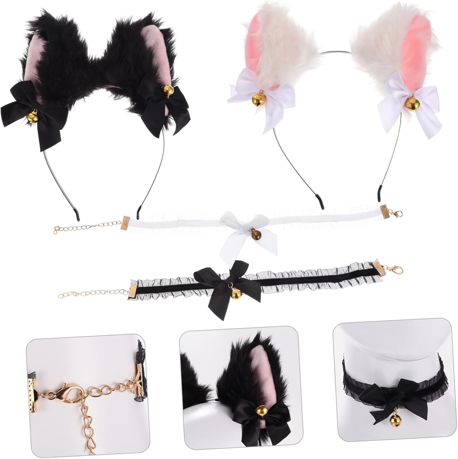 Accessori per costumi da gatto per donna: grazioso design con orecchie da gatto e collana in pizzo, evidenzia il tuo aspetto, cattura l'attenzione di tutti tra la , cosplay di orecchie da gatto Fascia per orecchie di animali: una aggiunta al tuo costume da cosplay di gatto, porta più divertimento e gioia per il tuo gioco di ruolo, fasce per orecchie di animali Cerchietto con orecchie di gatto e fiocco: perfetto per feste di halloween, feste di natale, cosplay, feste di compleanno, feste di ruolo, feste in maschera e altre occasioni, per mostrare il tuo fascino e la tua bellezza, cerchietto con orecchie di gatto Copricapo da cameriera: un unico per i tuoi cari, come , amante, fidanzata, moglie o le tue amiche, grazioso cerchietto per il trucco con orecchie di animale Accessorio per costume da gatto: puoi indossarlo solo per divertimento, o per halloween, feste di cosplay, feste a tema, ecc., accessori per cosplay
