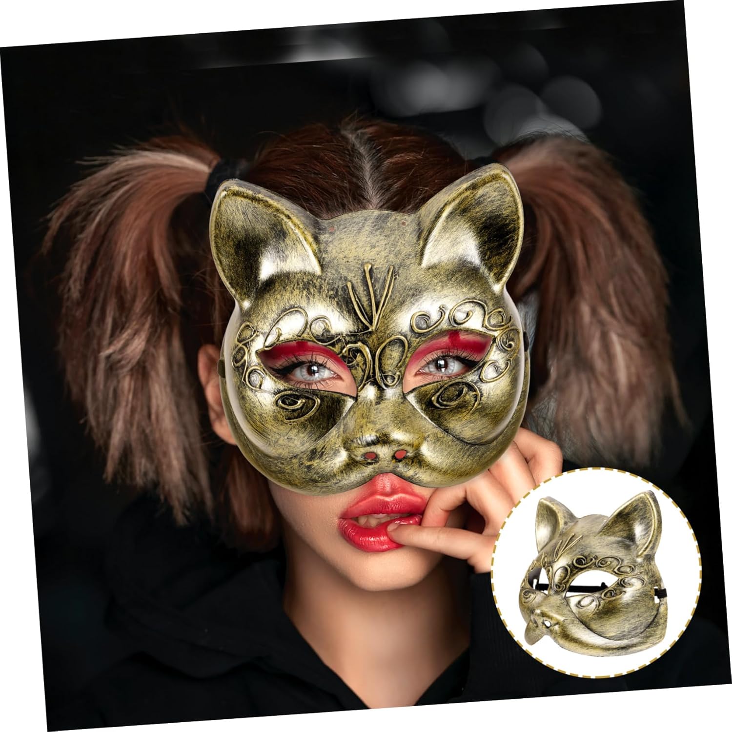 Elenco dei pacchetti 5 x Caratteristiche della maschera -Stile unico: lo stile unico della maschera animale aggiunge lusso e maschera da gatto a qualsiasi outfit. - Squisita fattura: la maschera cosplay intagliata retrò è realizzata con precisione artigianale, rendendola un accessorio per feste unico. - Materiale confortevole: la maschera per travestimento è realizzata in materiale confortevole che garantisce che possa essere indossata per lunghi periodi di tempo senza causare disagio. - colore: maschera divertente dorata - design creativo: la maschera da animale gatto è un accessorio unico e creativo adatto per una maschera da evento femminile. -materiale: maschera cosplay in plastica per -dimensioni: 17,50x16,00x5,00 cm/6,88x6,29x1 maschera decorativa. -Uso versatile: l'accessorio maschera di carnevale è adatto a varie occasioni come carnevali, feste in maschera ed eventi a tema, maschera unica. Informazioni sul prodotto Maschera decorativa per gatti Il prodotto è una maschera per feste in maschera che può offrirti maggiore comodità, permettendoti di avere un ambiente più confortevole. Accessorio per maschera di carnevale, può essere indossato a lungo senza rovinarsi facilmente. maschera per animali per feste questo prodotto è una maschera per gatti, realizzata con materiali resistenti, sicuri e durevoli