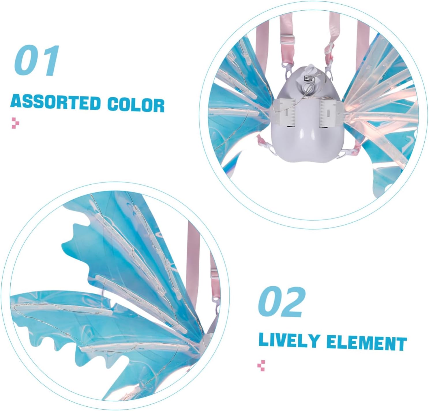 Altalena automatica: le ali elettriche possono oscillare automaticamente, aggiungendo un elemento divertente e vivace alla festa di ogni bambino Design elettrico: con un semplice inserimento della batteria, queste ali sono facili da usare e molto comode per qualsiasi evento Uso versatile: ideale per varie occasioni come Natale e Halloween, migliorando l'atmosfera festosa Eleganti e carine: le ali presentano un design elegante e carino, rendendo il tuo bambino al centro dell'attenzione a qualsiasi festa Leggere e confortevoli: realizzate con materiali leggeri e confortevoli, queste ali non interferiranno con le attività del tuo bambino, permettendogli di giocare liberamente