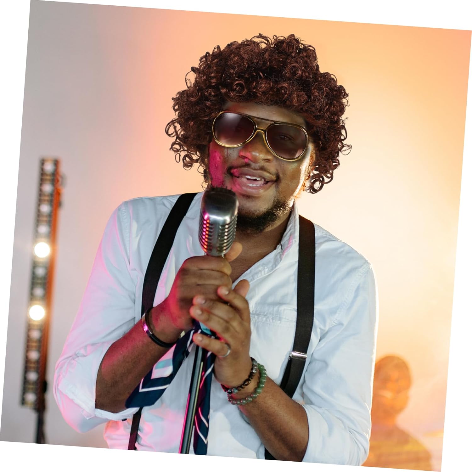 Parrucca da discoteca per uomo: leggera e comoda da indossare, divertente e creativa, unica ed elegante, pratica per feste in stile cosplay, parrucche anni '70 per uomo Ampia applicabile: gli accessori per da discoteca sono adatti a molte occasioni, come cosplay, halloween, spettacoli teatrali, ecc., accessori da discoteca, accessori per costumi cosplay Occhiali da sole per bambini: facili da indossare e da rimuovere, possono essere riutilizzati più volte, per rendere la tua festa più divertente e goderti la tua festa divertente, accessori per costumi anni '70 per uomo Facile da abbinare in base alle tue esigenze: gli accessori per travestimenti da festa anni '70 aggiungeranno più fascino tuo outfit a tema discoteca e ti renderanno cool, parrucca cosplay, accessorio cosplay anni '70 per uomo: adatti per adolescenti e adulti, la parrucca realistica, gli occhiali da sole e la collana possono abbinarsi bene tuo costume da cosplay, accessori per costumi anni '70