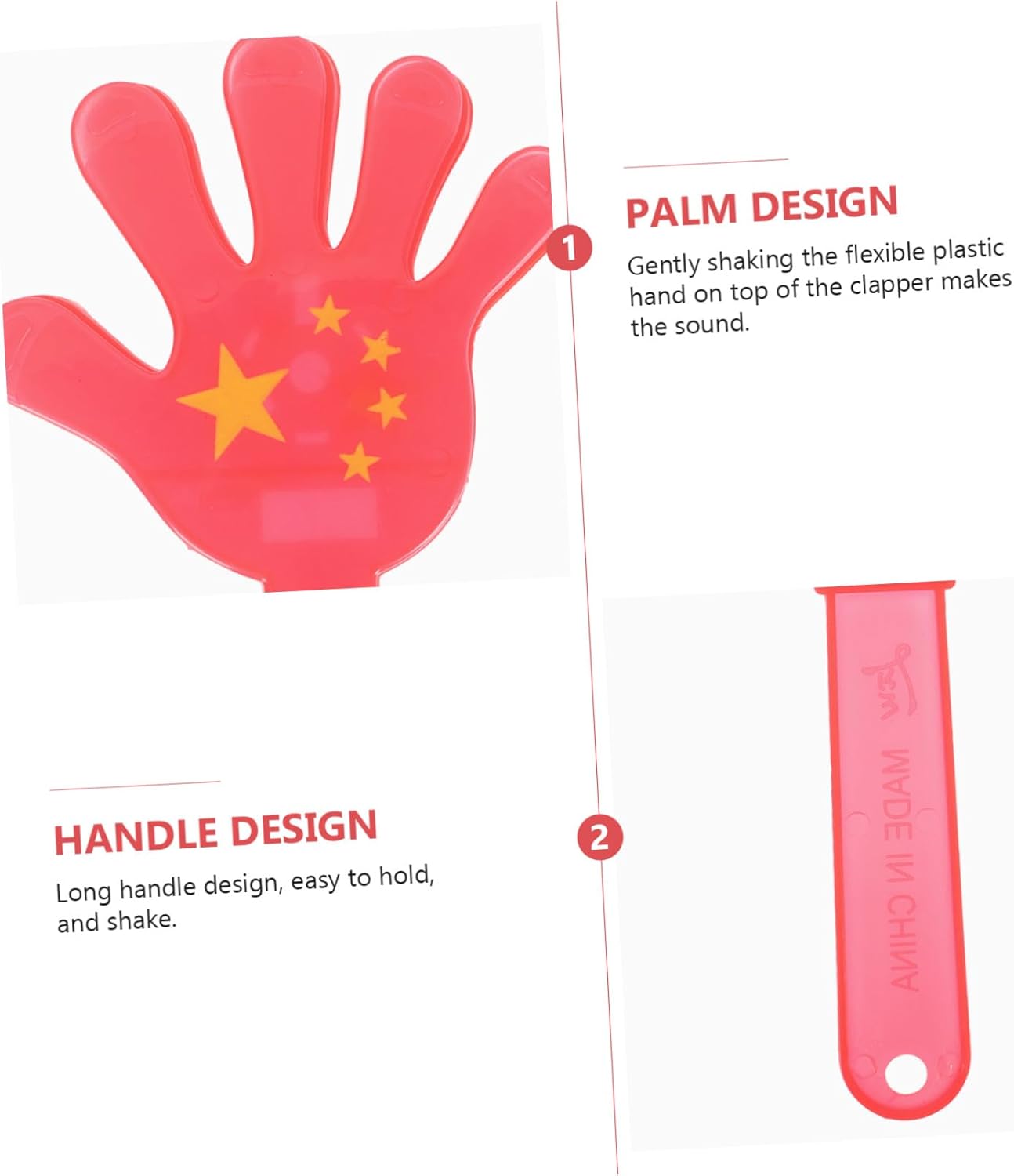 Questi divertenti cinque battagli con bandiera rossa fanno rumore facilmente, ma il giocattolo del batacchio è facile da tenere e usare, creatore di rumore per le feste Batacchio: realizzato in materiale plastico sicuro e affidabile, senza spigoli vivi che feriscano le mani, ideale come regalo per le feste con superficie liscia, giocattolo battacchio per le feste: il batacchio è leggero e compatto, facile da tenere per feste o scopi di intrattenimento. battiti di mani dei rumoristi che applaudono oggetti di scena per . Regali per feste: facili da fare rumore ma facili da tenere e utilizzare. Puoi migliorare l'atmosfera felice scuotendo questi batacchi per emettere un suono. Battagli colorati per feste: i battagli con cinque bandierine rosse sono realizzati e sicuri da usare, un regalo per le feste per chi fa rumore