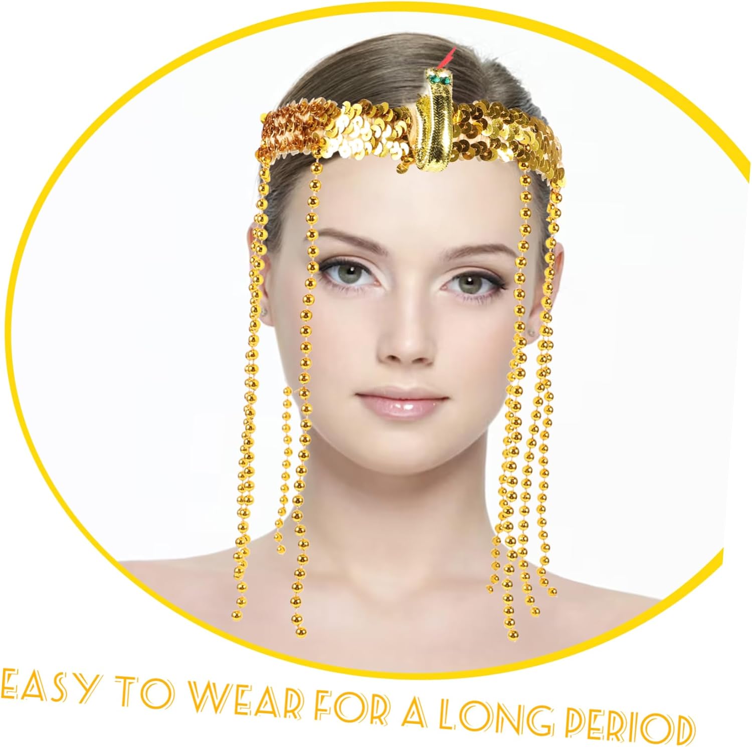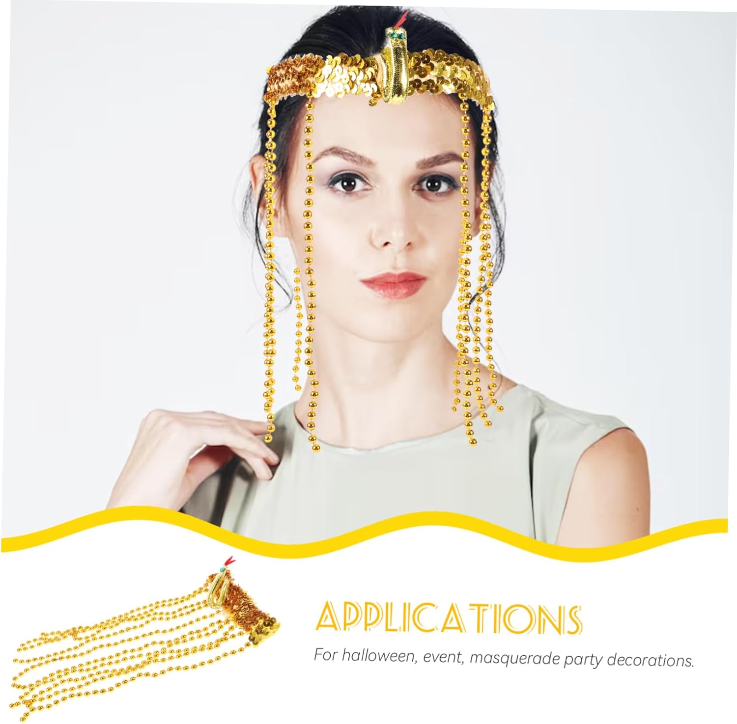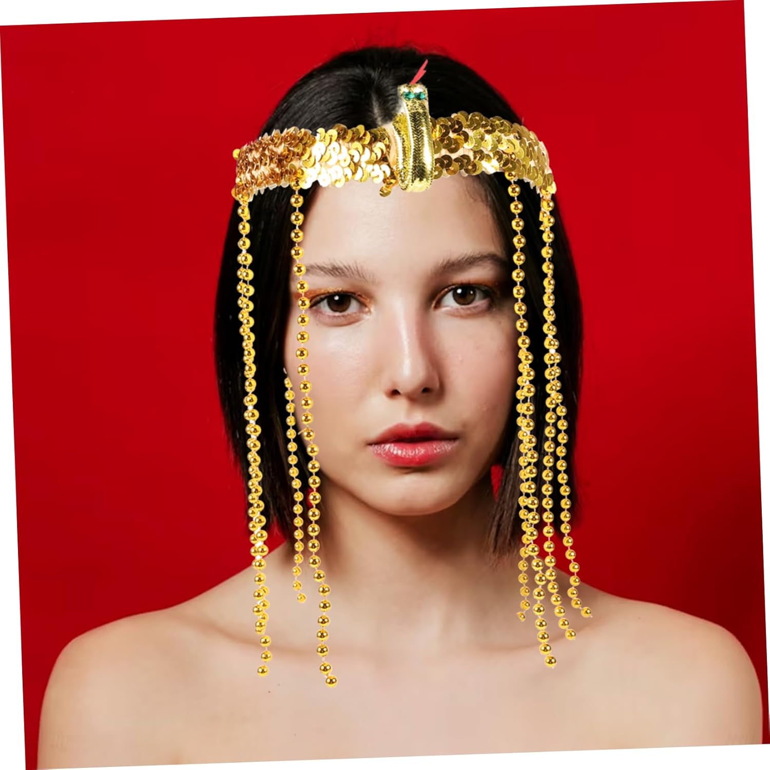 Costume egiziano: fascia elasticizzata con paillettes dorate, fasce per Vestito dorato: gli accessori rendono il tuo costume pop, copricapo egiziano Copricapo egiziano: ornato con perline pendenti e un serpente, fascia per il trucco Costume da dea: ideale per halloween, eventi, decorazioni per feste in maschera, costumi egiziani da donna