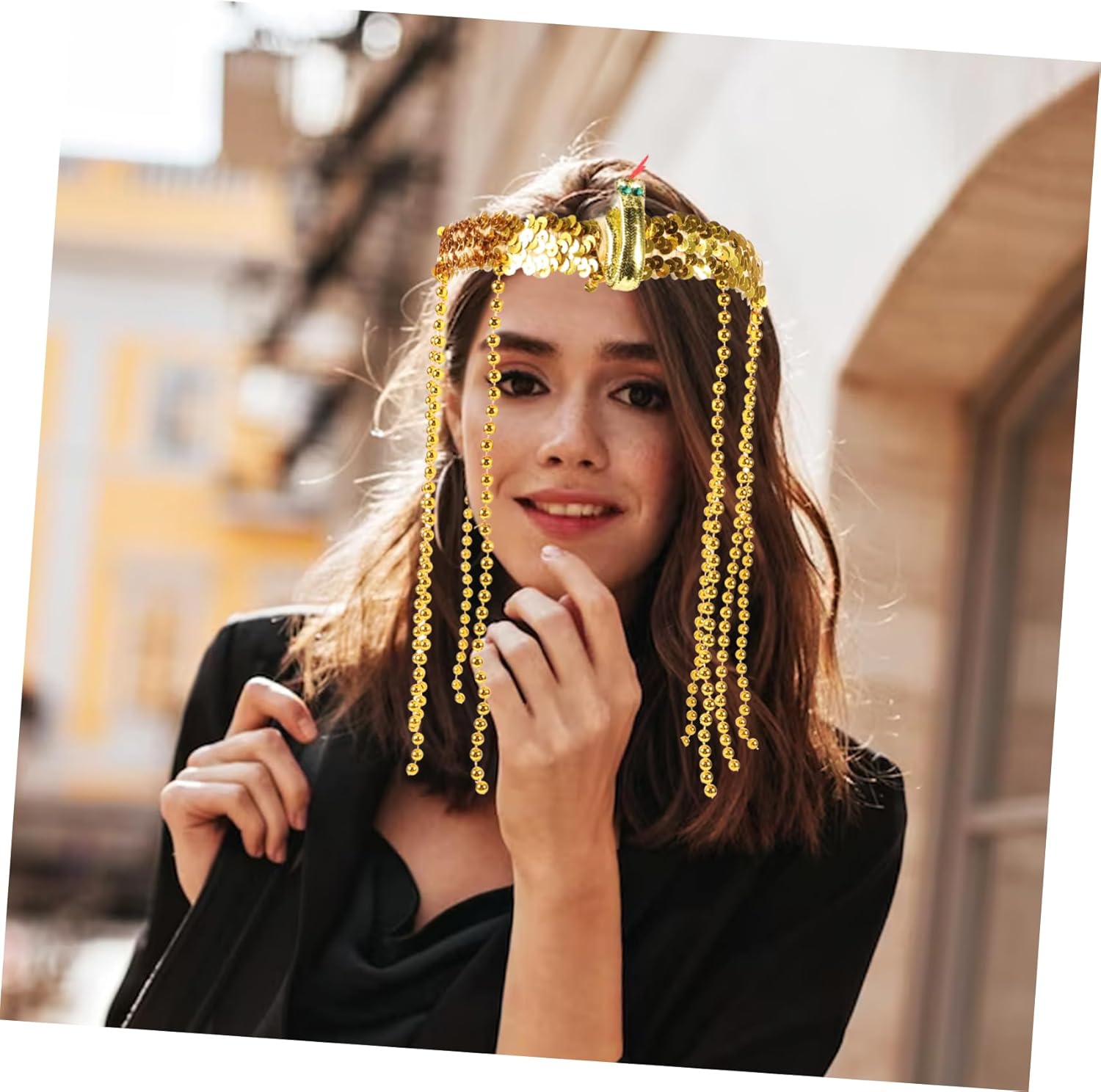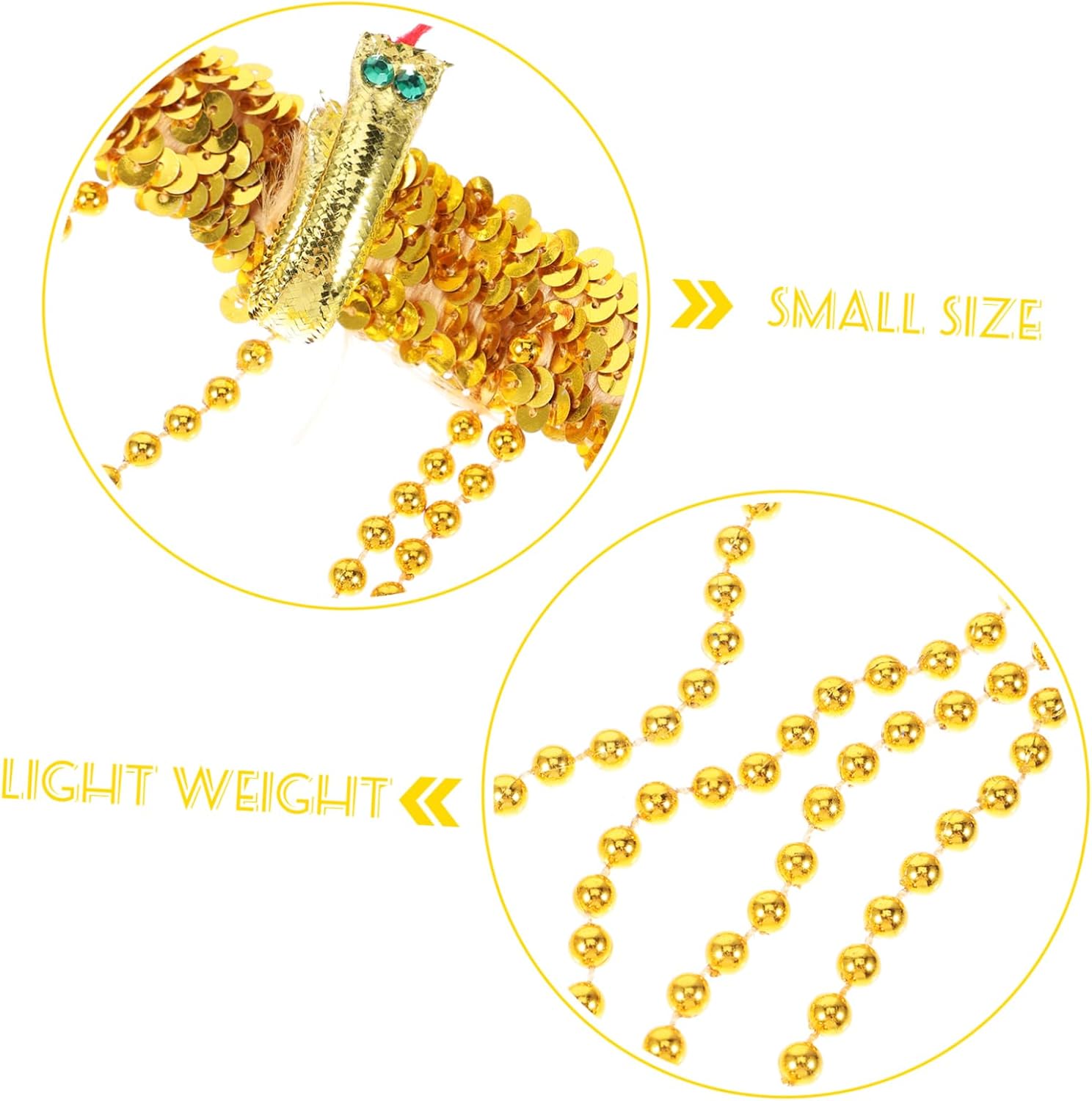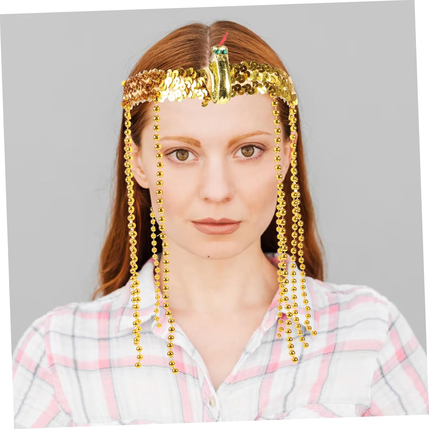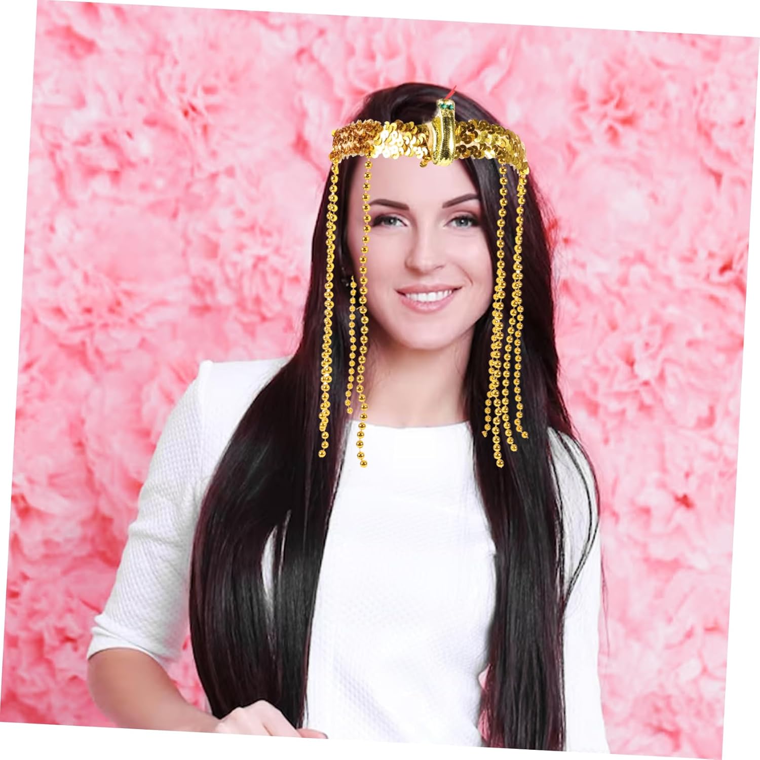 Costume egiziano: fascia elasticizzata con paillettes dorate, fasce per Vestito dorato: gli accessori rendono il tuo costume pop, copricapo egiziano Copricapo egiziano: ornato con perline pendenti e un serpente, fascia per il trucco Costume da dea: ideale per halloween, eventi, decorazioni per feste in maschera, costumi egiziani da donna