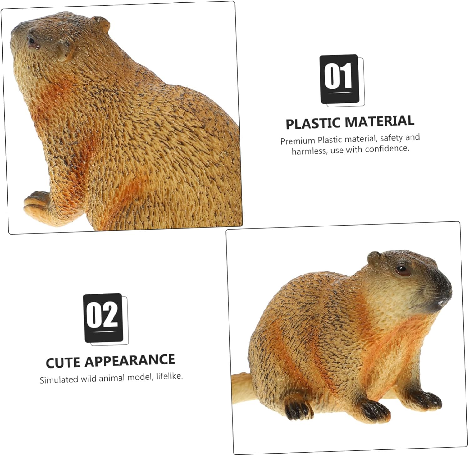 Simulation Decoration - The plastic animal model ornaments can be used for room, children's room or home decoration in wild animal style, Marmot Figure Sculpture - Besides, you can spend a nice time with your family with the simulation toy, Recognition Model Miniature Marmot Statue - It has a compact size that is easy to use. Questo modello è utilizzato come modello scientifico e giocattolo educativo o come gioiello. Simulazione di figure di marmotta - Ha un aspetto simulato che aggiunge vitalità alla decorazione della scena, figura di simulazione del modello di figura - bordi arrotondati e superficie liscia, questo falso è sicuro al tatto e non ti farà male alle mani, decorazione