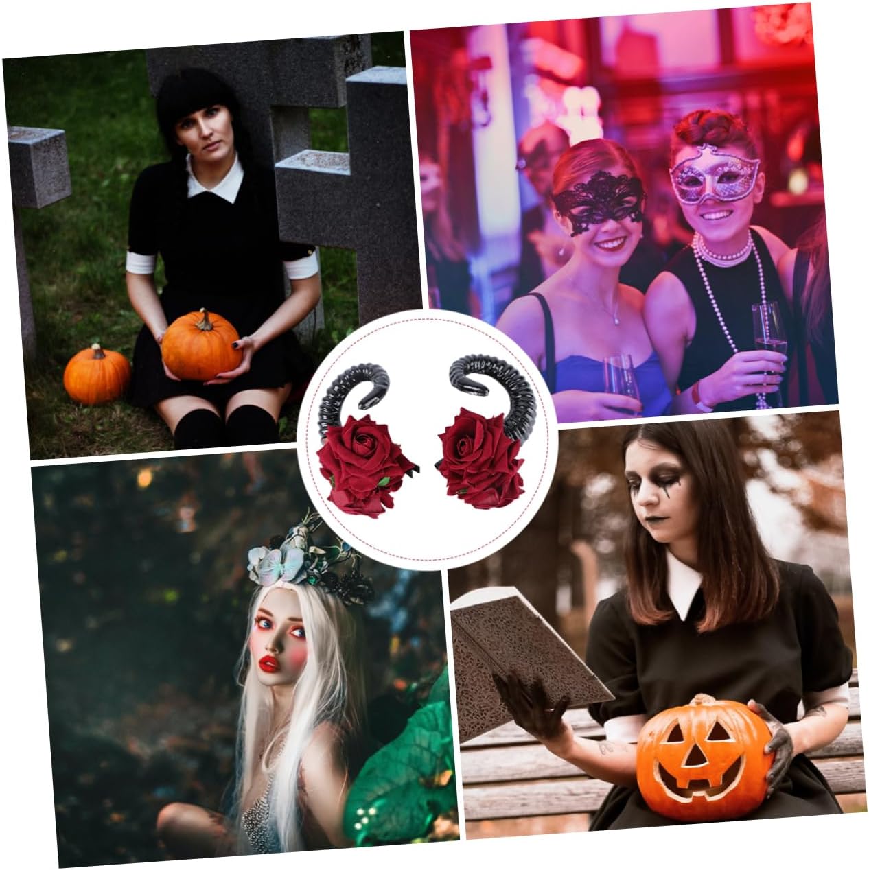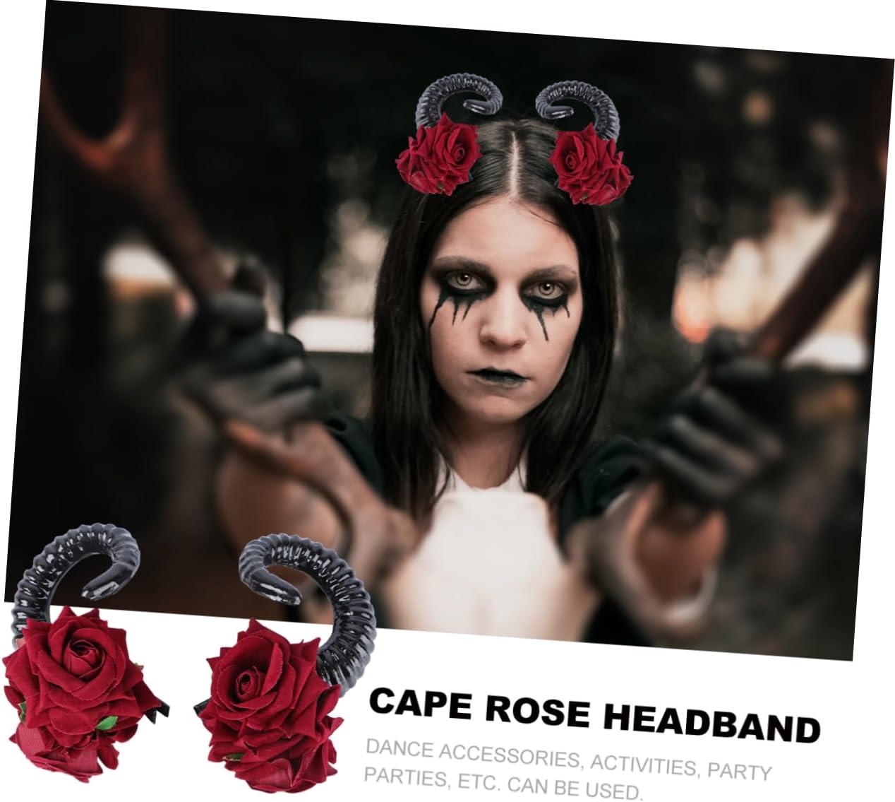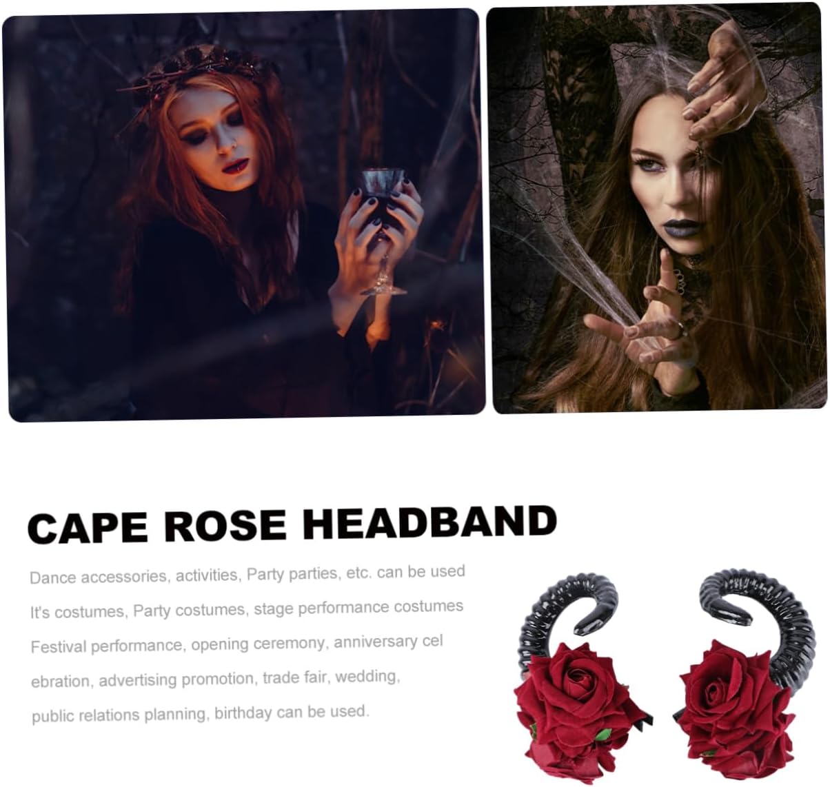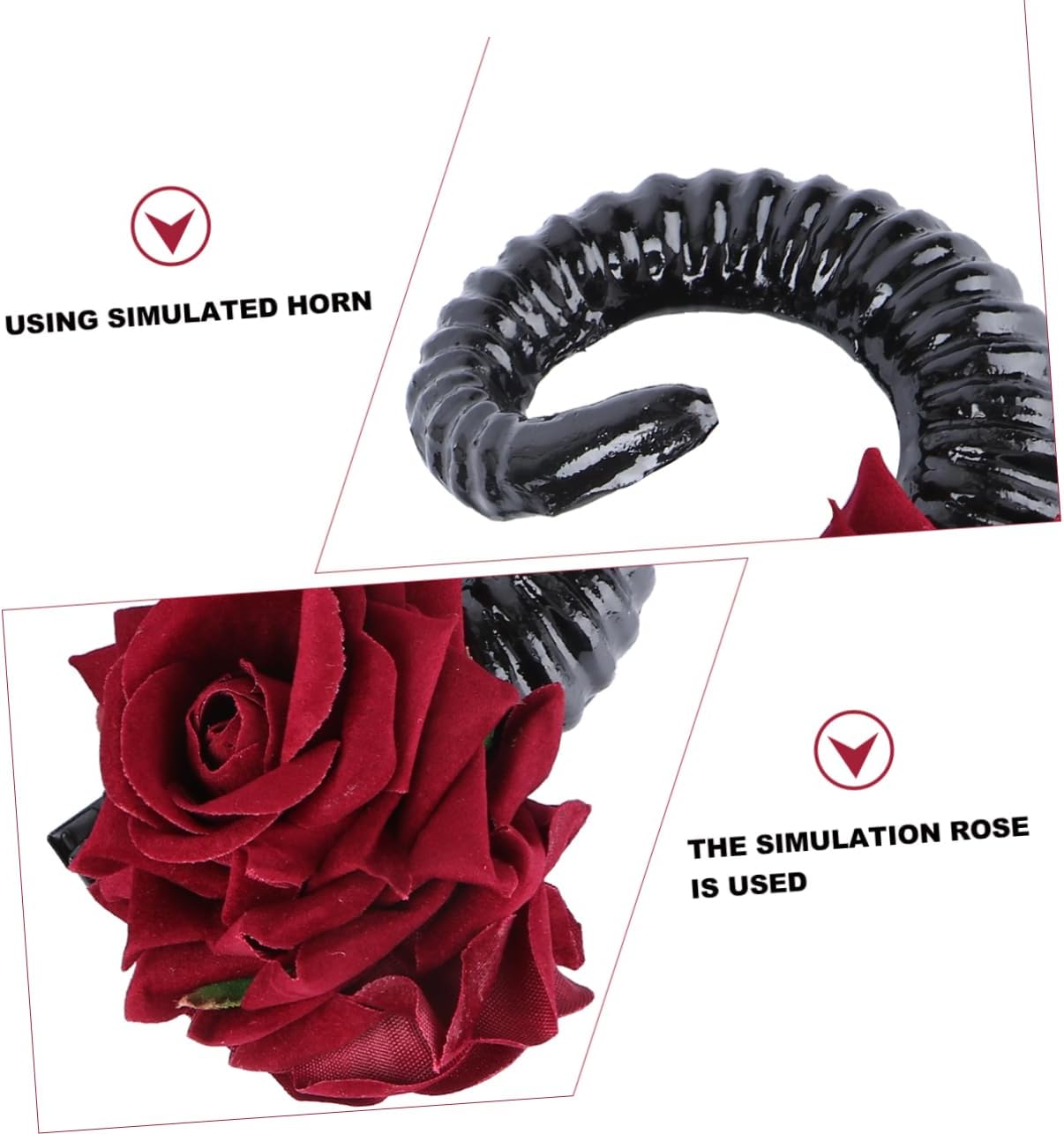 Copricapo gotico: perfetto per feste, spettacoli, festival ecc., forcina con corno di pecora Decorazione per : il materiale di alta qualità lo rende facile e comodo da indossare, accessorio per in corno di pecora Forcina gotica: copricapo a forma di palla esagerata con rose, che lo rende più festoso, gioielli per con rose Accessorio per a forma di rosa: perfetto per i che per gli adulti, più attraente e affascinante, forcina per a forma di rosa Accessorio per : la forma creativa del corno sul design della fascia rende i tuoi più pieni di atmosfera da festa, fermaglio gotico