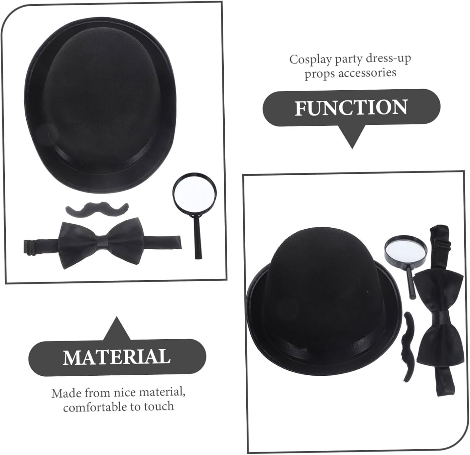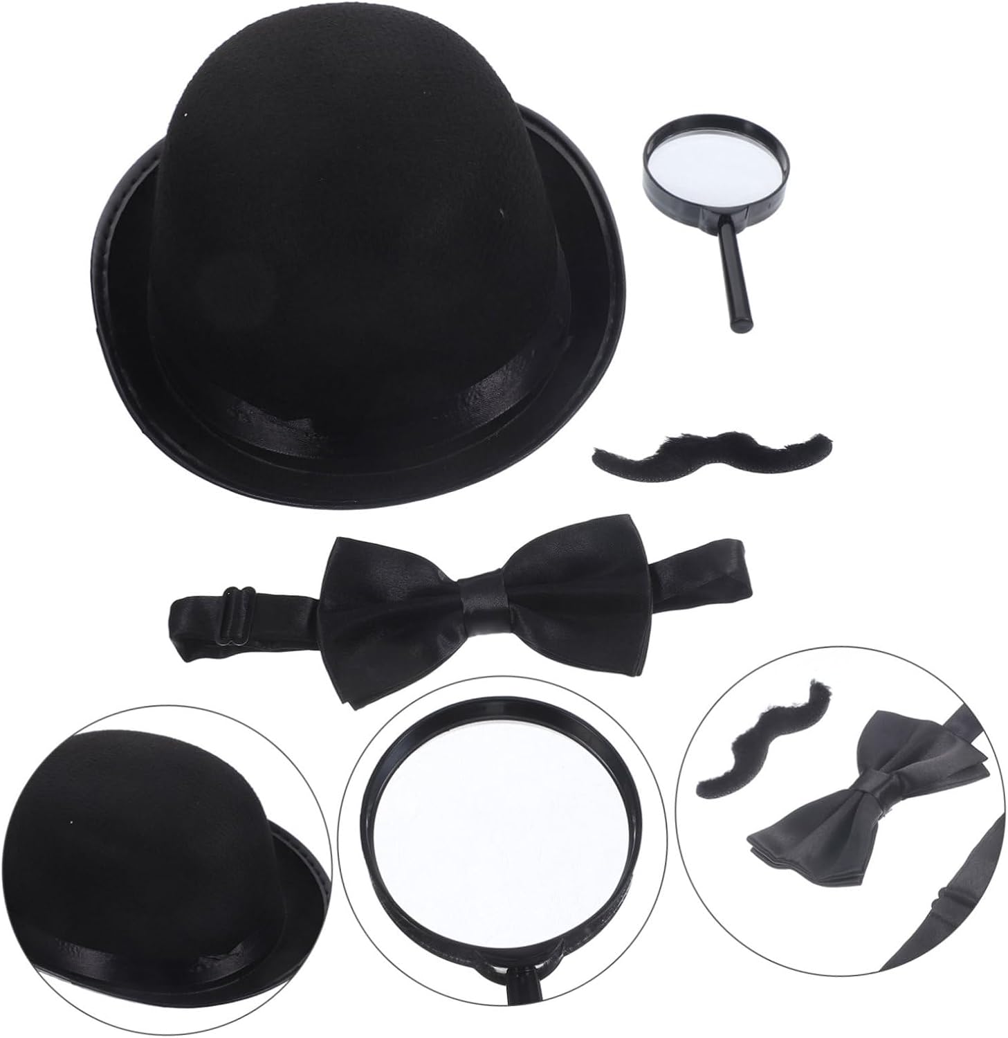 il pacchetto include 1 cappello 1 baffi 1 1 lente d'ingrandimento caratteristiche - dimensioni: 27,00x20,00x9,00 cm/10,61x7,86x3 oggetti di scena per cosplay detective. - materiale: stoffa, costume da festa in plastica da detective - : nero accessori per strumenti da detective : i baffi non saranno facilmente distrutti o sbiaditi e altri accessori sono convenienti per usare i baffi da cappello da detective. - artigianato eccellente, design creativo, curato in ogni dettaglio per dare loro un aspetto realistico accessori cosplay. - ottimo per chi ama il mistero e le storie poliziesche e vuole esplorare il mondo degli accessori investigativi e per la risoluzione dei crimini. - lavorazione leggera e raffinata, comoda e alla moda da indossare, senza preoccuparsi che spostino o falliscano costume da detective per cosplay. - questi oggetti di scena per cosplay da detective ti sono utili per completare i tuoi costumi con facilità. descrizione della merce oggetti di scena per cosplay che includono tutto ciò di cui hai bisogno per iniziare. I ragazzi travestono in costume per giocare con questi oggetti di scena, possono provare l'emozione di essere un detective e risolvere i crimini. Kit per barba da detective questi oggetti di scena per giochi di ruolo da detective sono per le persone che amano risolvere e indagare