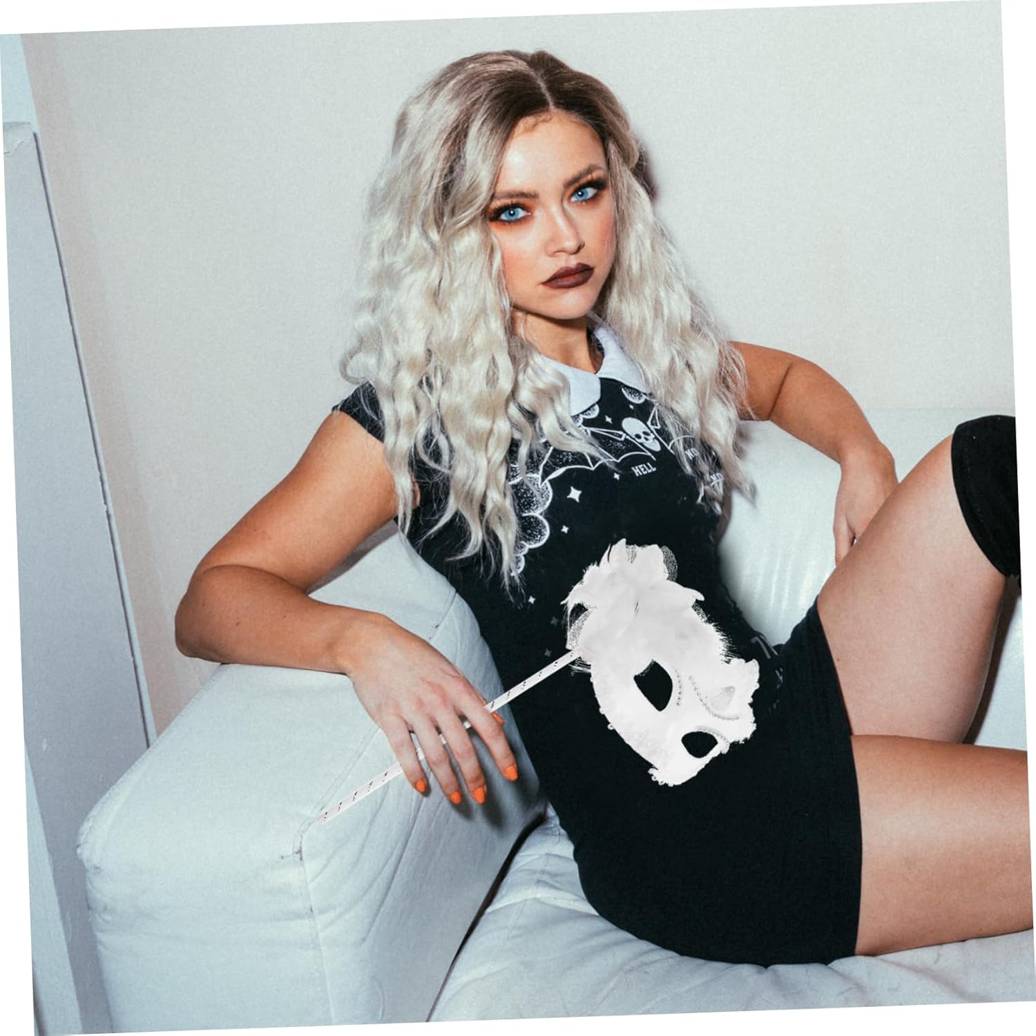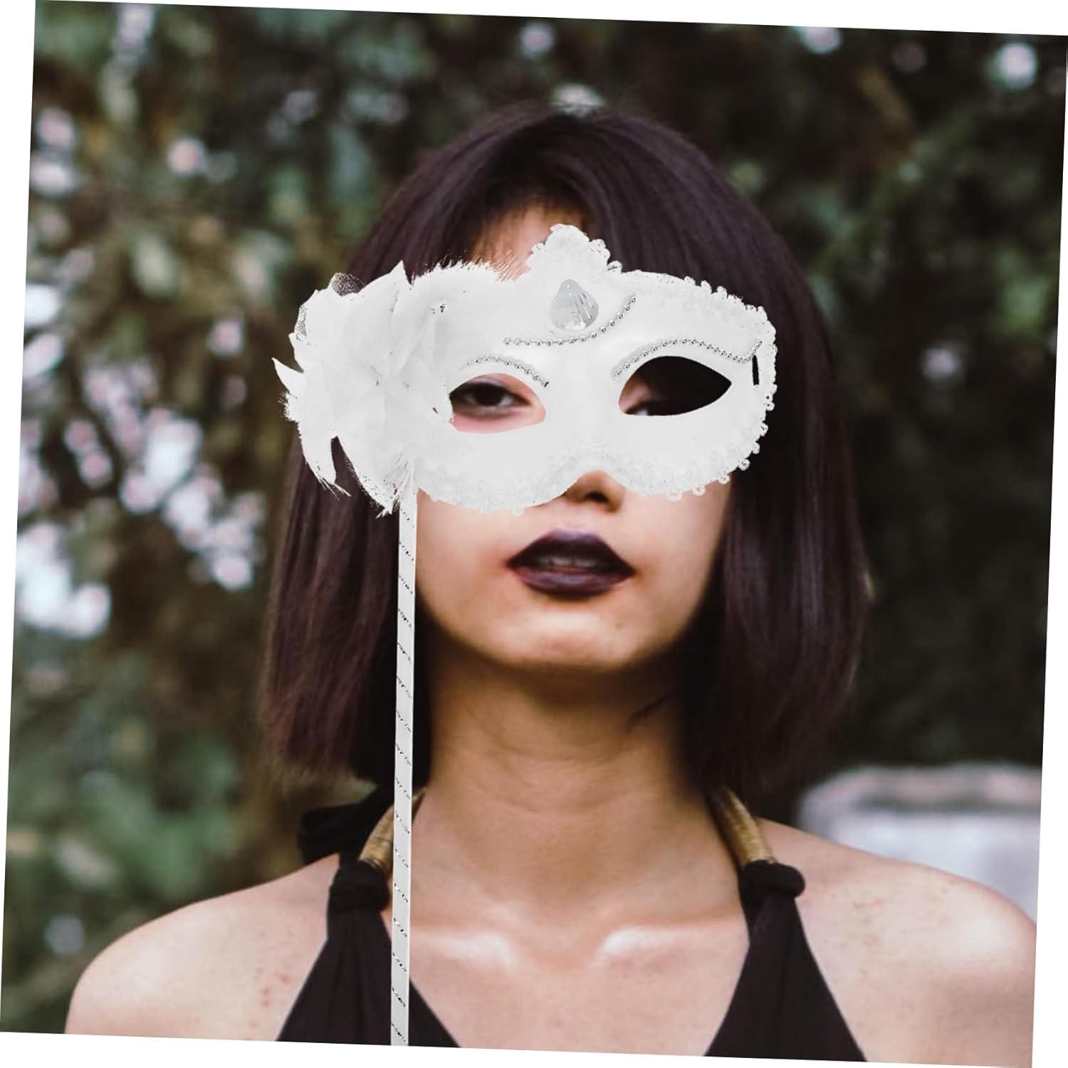 La confezione include 1 x Descrizione della merce Halloween Lace Costume di Halloween Masquerade Performance Puntelli Forniture per feste Nero