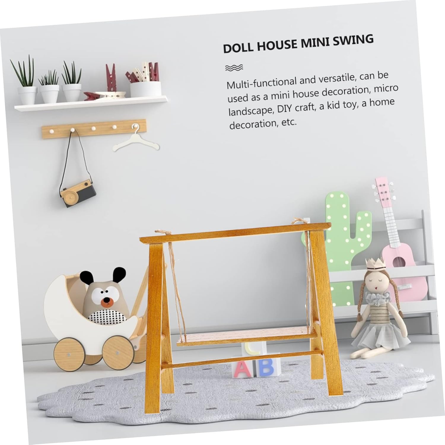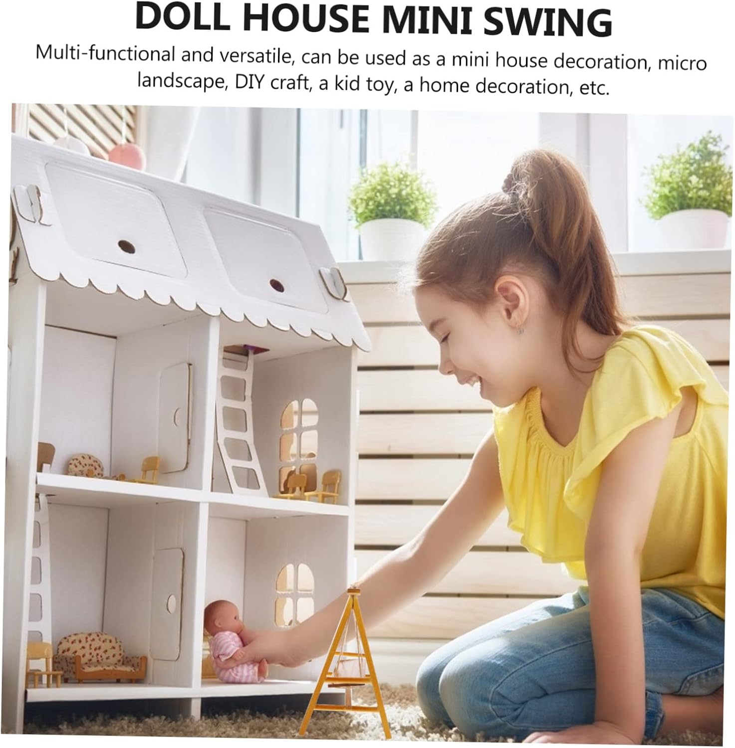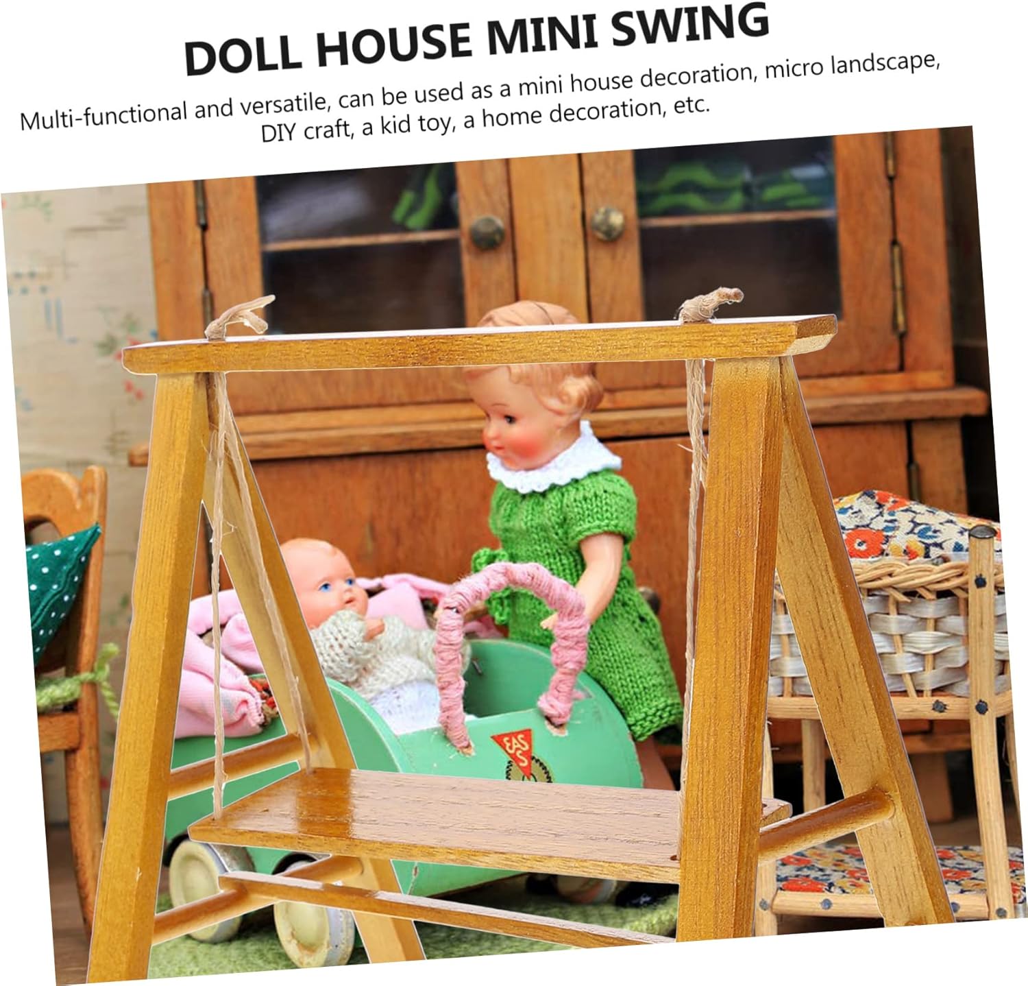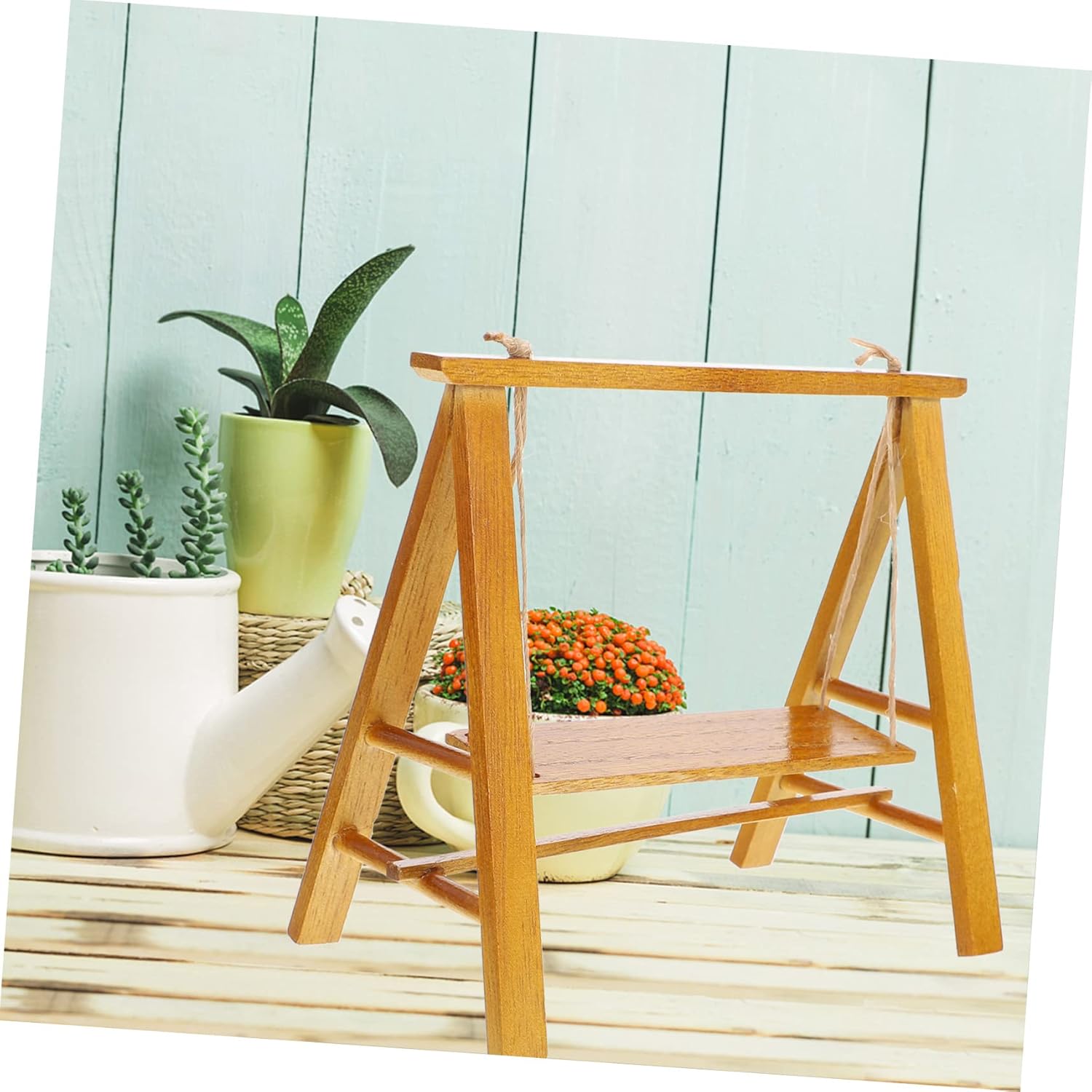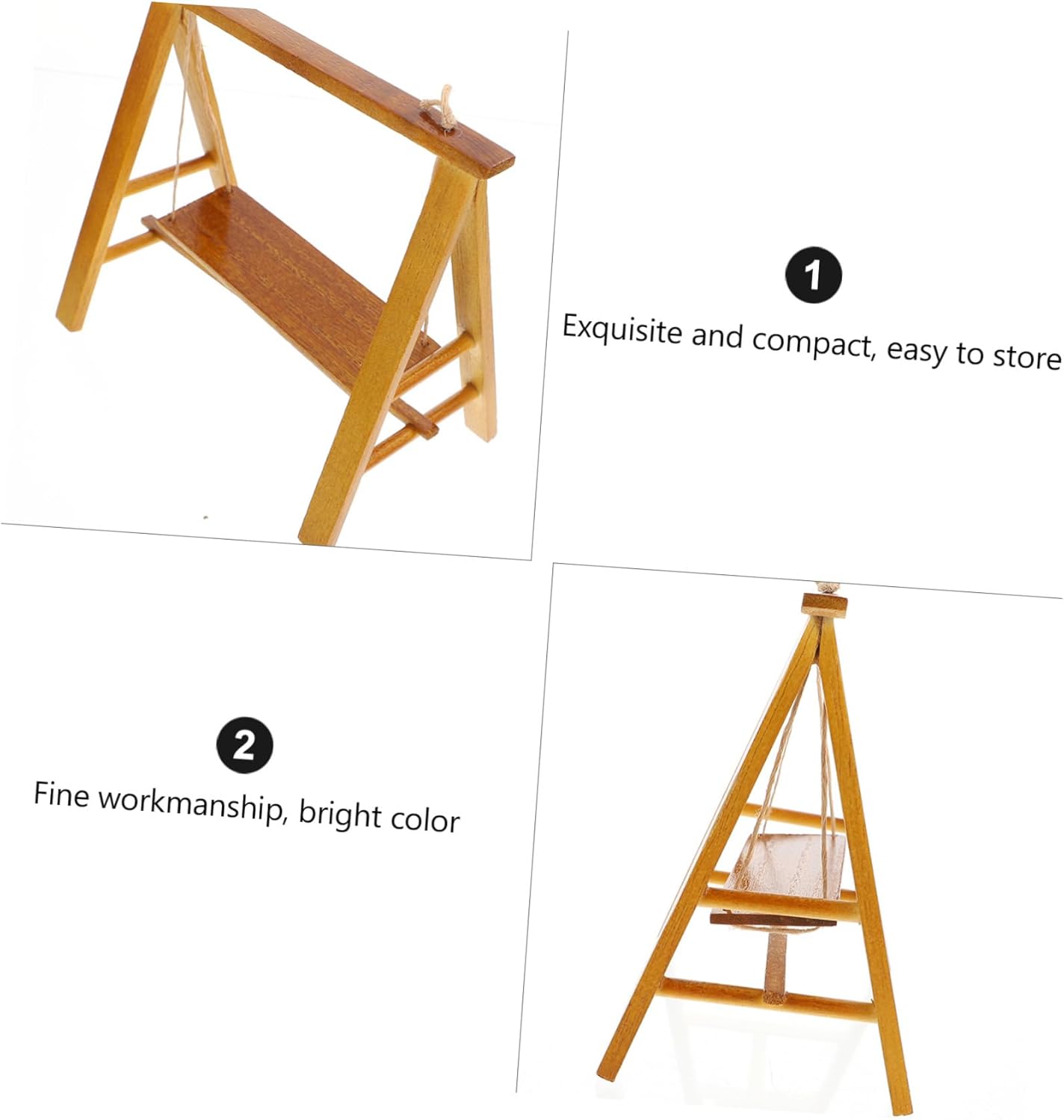 Mini decorazione per altalena da giardino: pregevole fattura e aspetto creativo garantiscono popolarità e praticità. Mini altalena: materiale in legno, sano e sicuro per il fai da te dei bambini. Altalena micro paesaggistica: utilizzata principalmente per la decorazione di case delle bambole, decorazione di stanze, artigianato fai-da-te, ecc. Altalena in legno: ideale per micro paesaggi, case delle bambole, case giocattolo, giocattoli per bambini, artigianato fai-da-te, ecc. Altalena di simulazione: non farà male alle mani, sana e sicura, le madri sono al sicuro per i bambini che giocano.