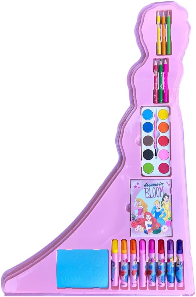 La confezione sagomata dei tuoi personaggi preferiti! Contiene: 12 colori a cera, 12 pastelli, 16 pennarelli, 2 notebook, 2 stencil, 10 acquerelli e 1 pennello. Ottima idea Regalo. Dimensioni Confezione: 61x29x3 Cm.